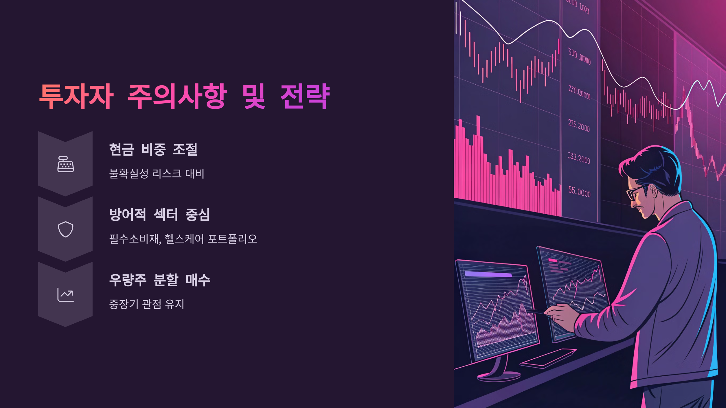 다음은 이번 장세에서 유의해야 할 투자 전략들이에요: