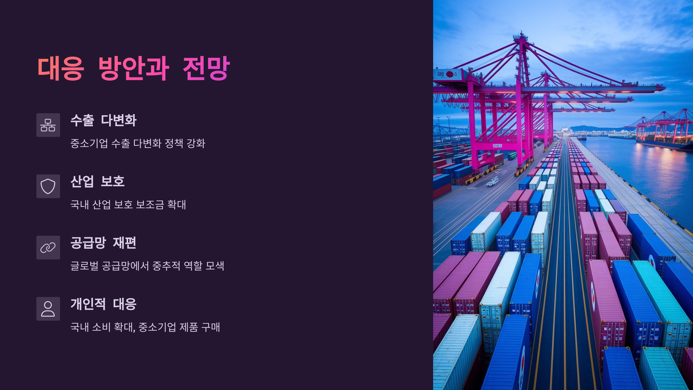 • 중소기업 수출 다변화 정책 강화