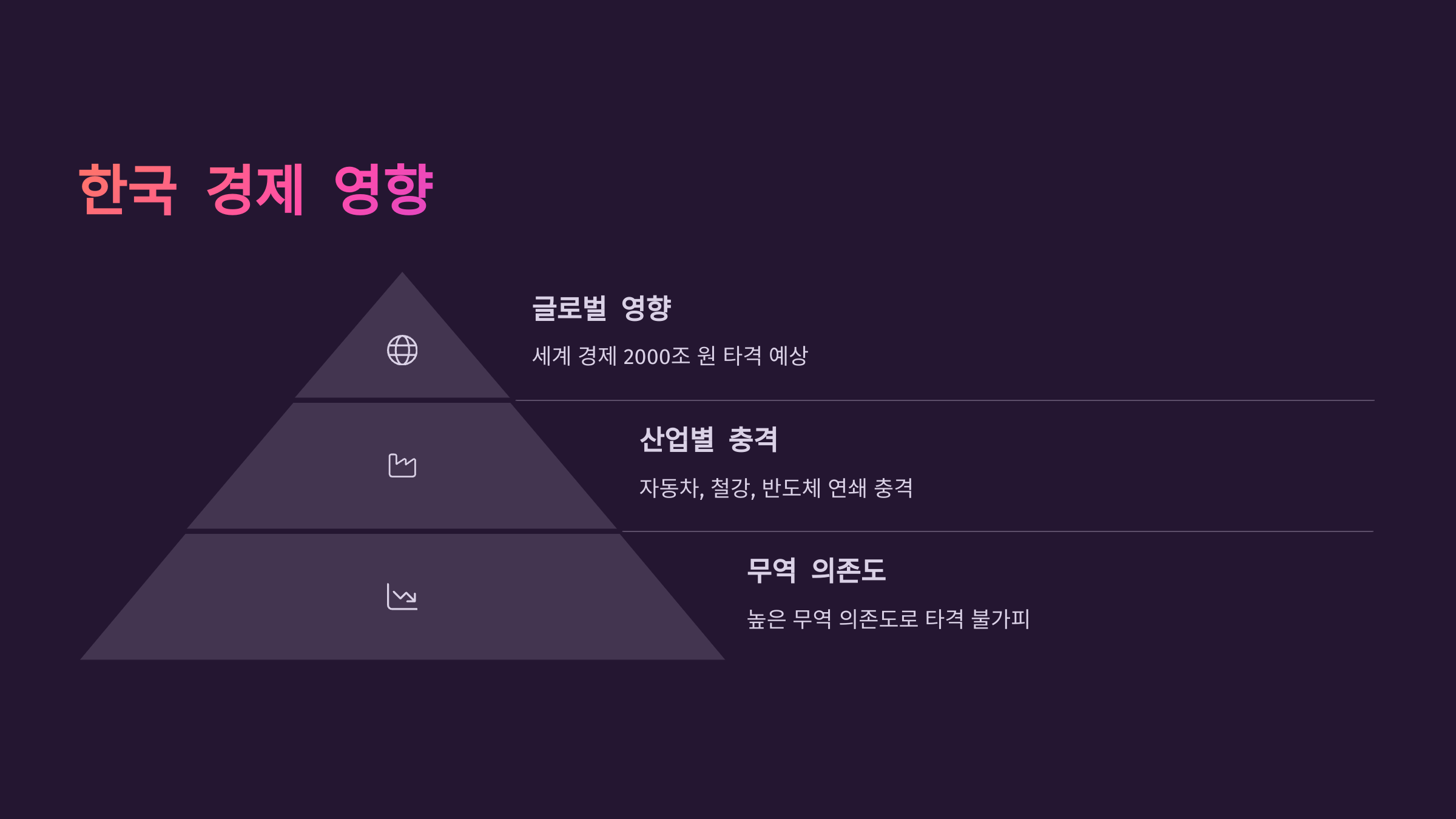 특히 자동차, 철강, 반도체 산업에 연쇄 충격이 올 가능성이 높죠.