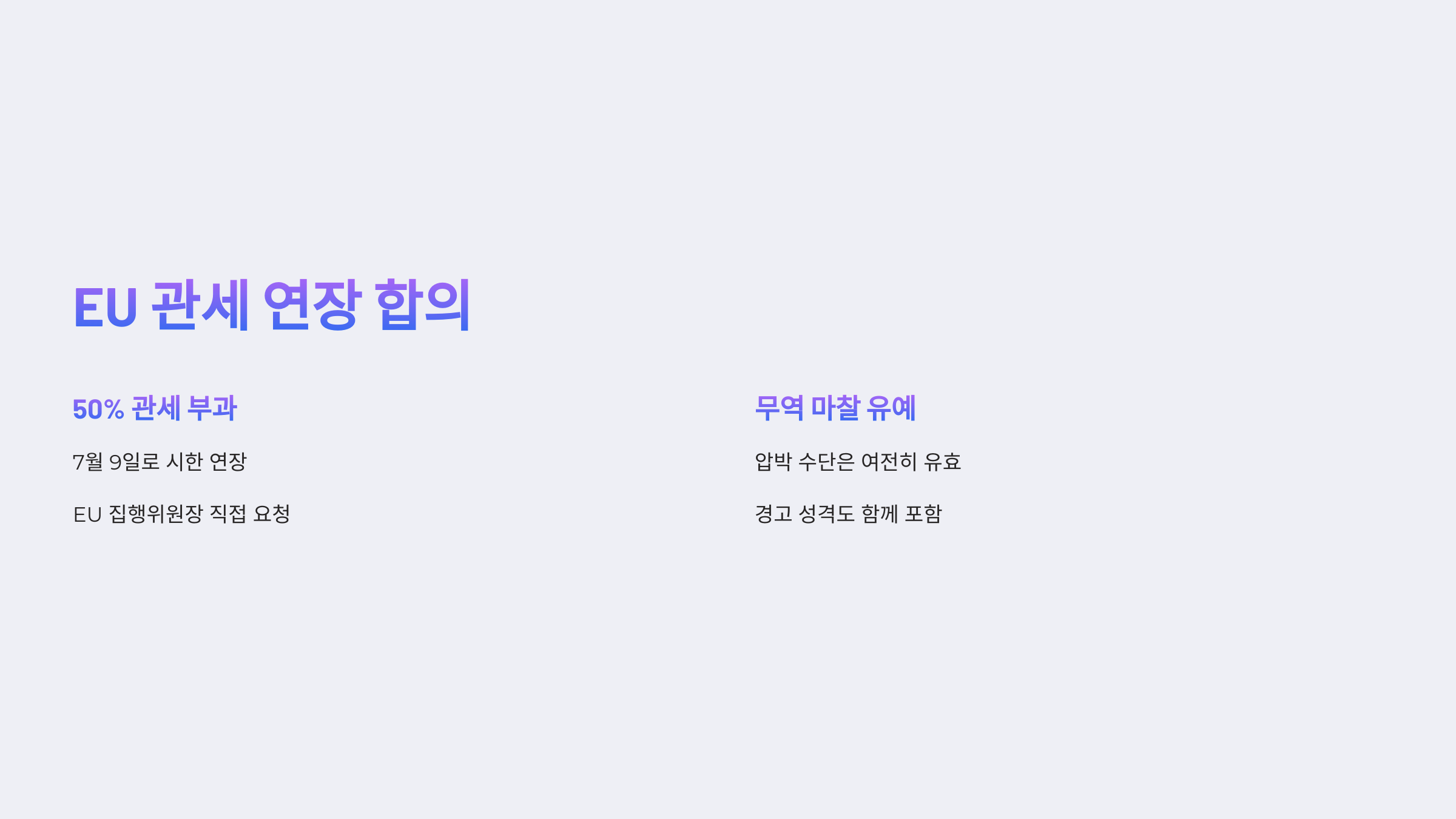 Q EU와의 50% 관세 연장 결정은 어떤 영향을 줄까요?