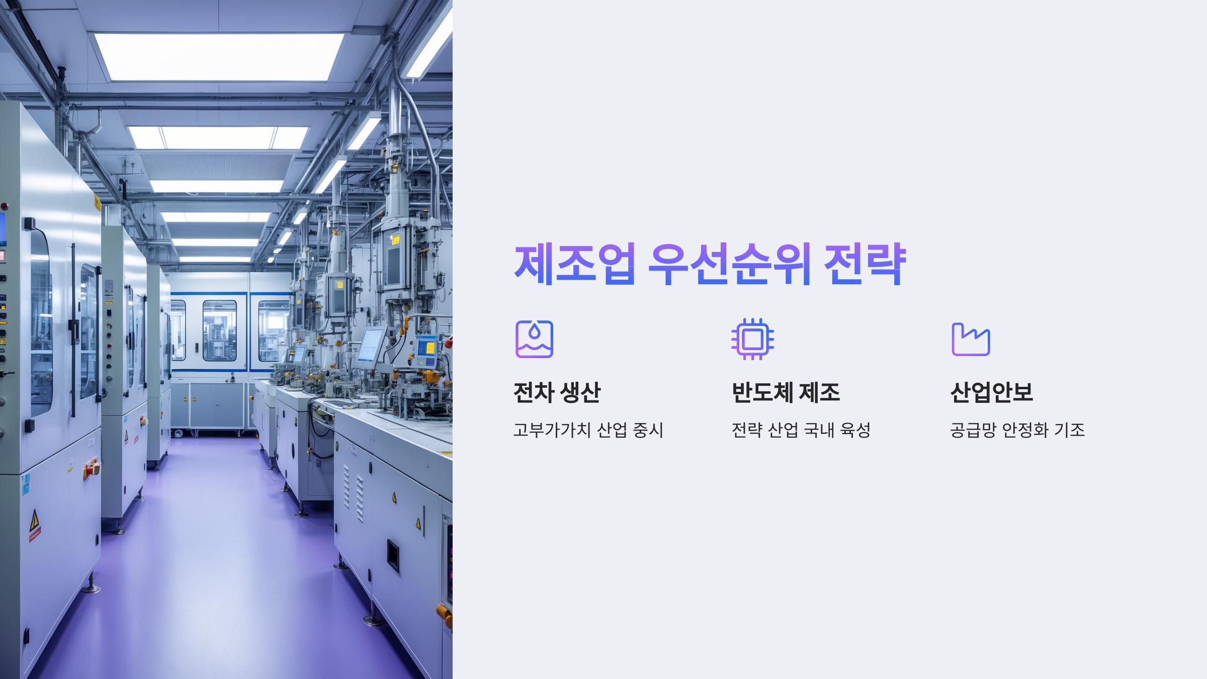 전략 산업 위주 육성을 강조하는 산업 정책적 메시지로,