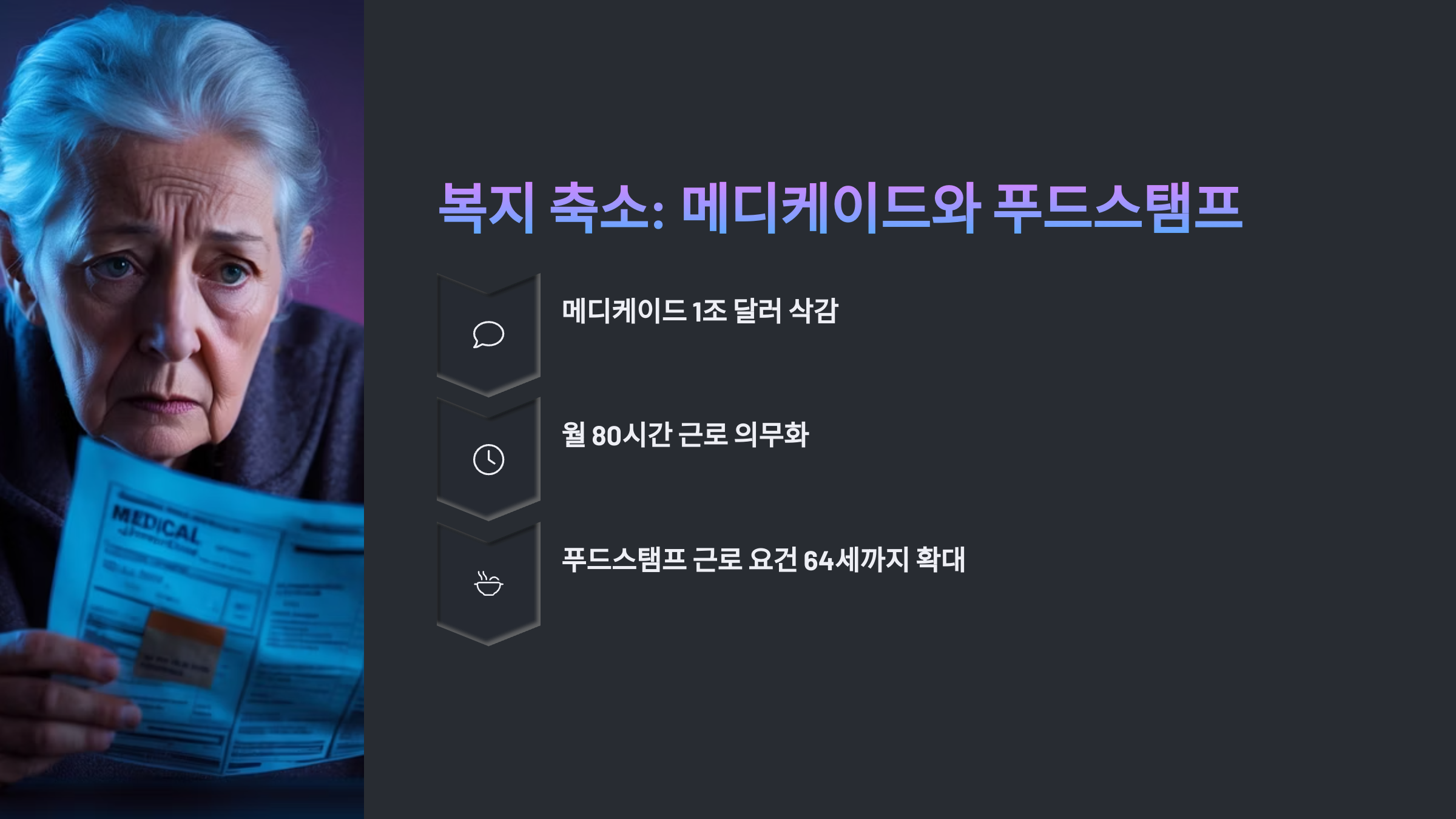 - 복지 축소: 메디케이드와 푸드스탬프
