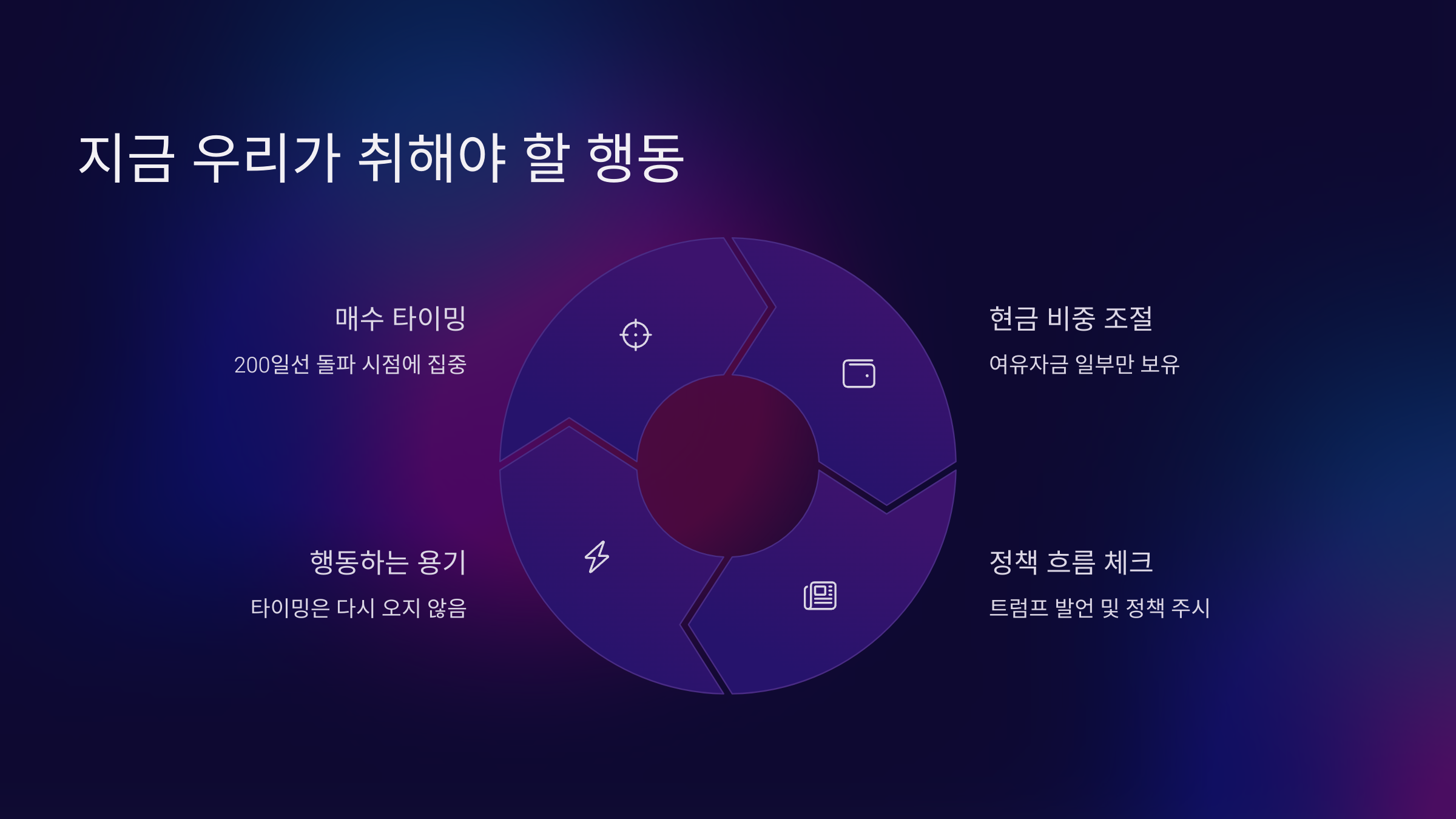 이런 흐름에서 중요한 건 '안전 마진'을 확보한 상태에서의 과감한 움직임이에요.
