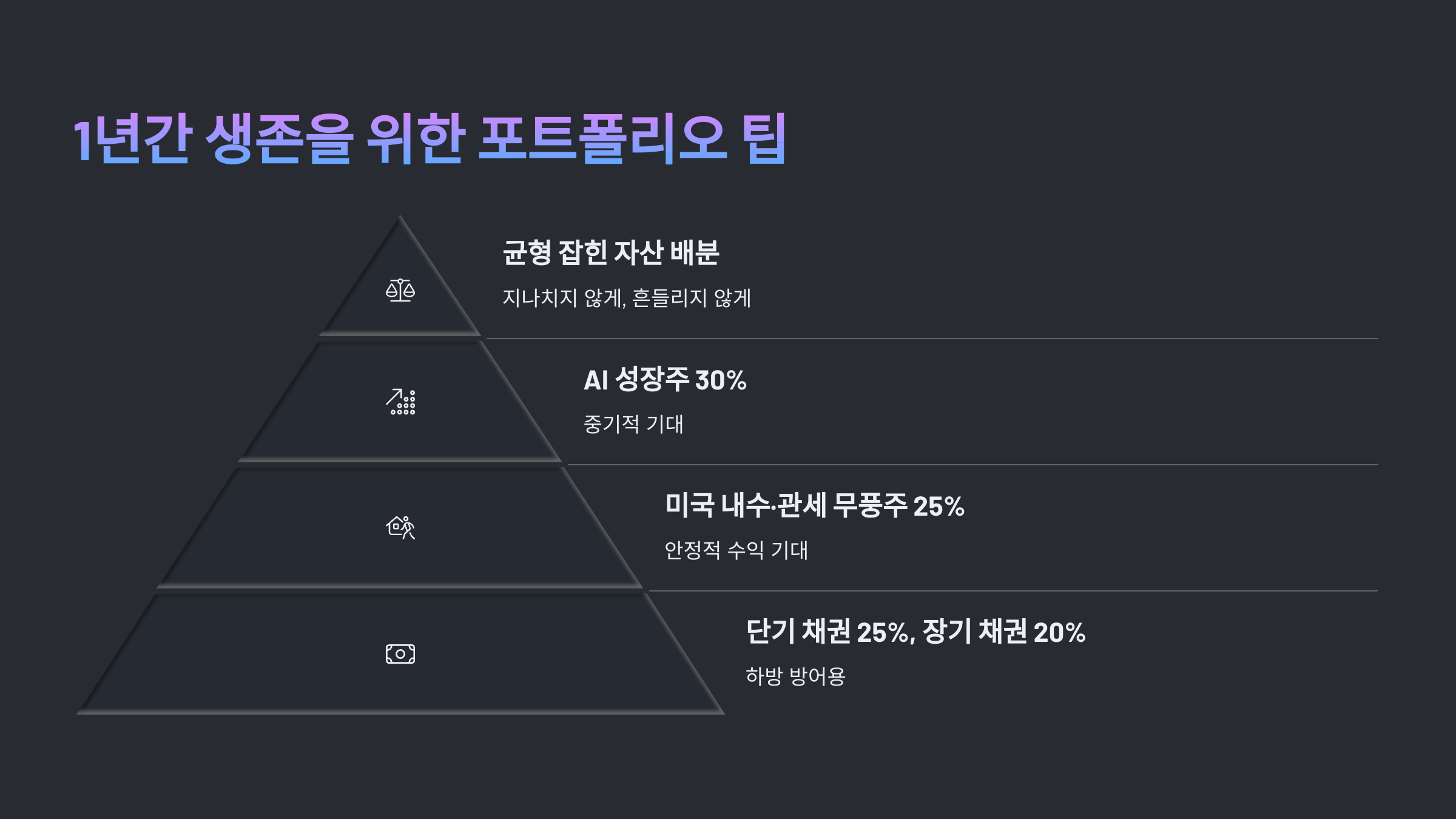 AI 성장주, 관세 무풍 내수주, 단기 채권, 장기 채권을