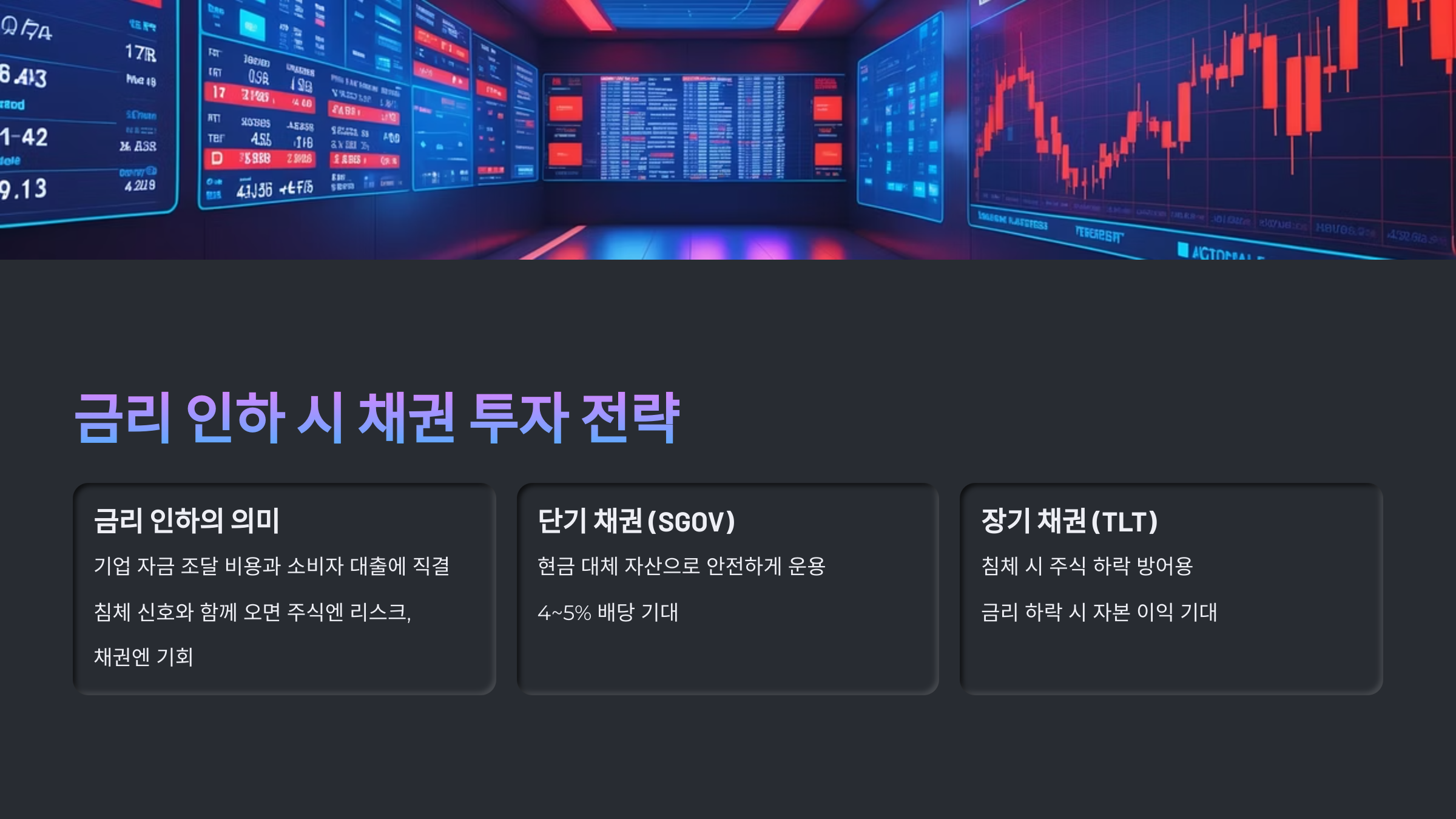 | 장기 채권 (TLT 등) | 침체 시 주식 하락 방어용 | 금리 하락 시 자본 이익 기대 |