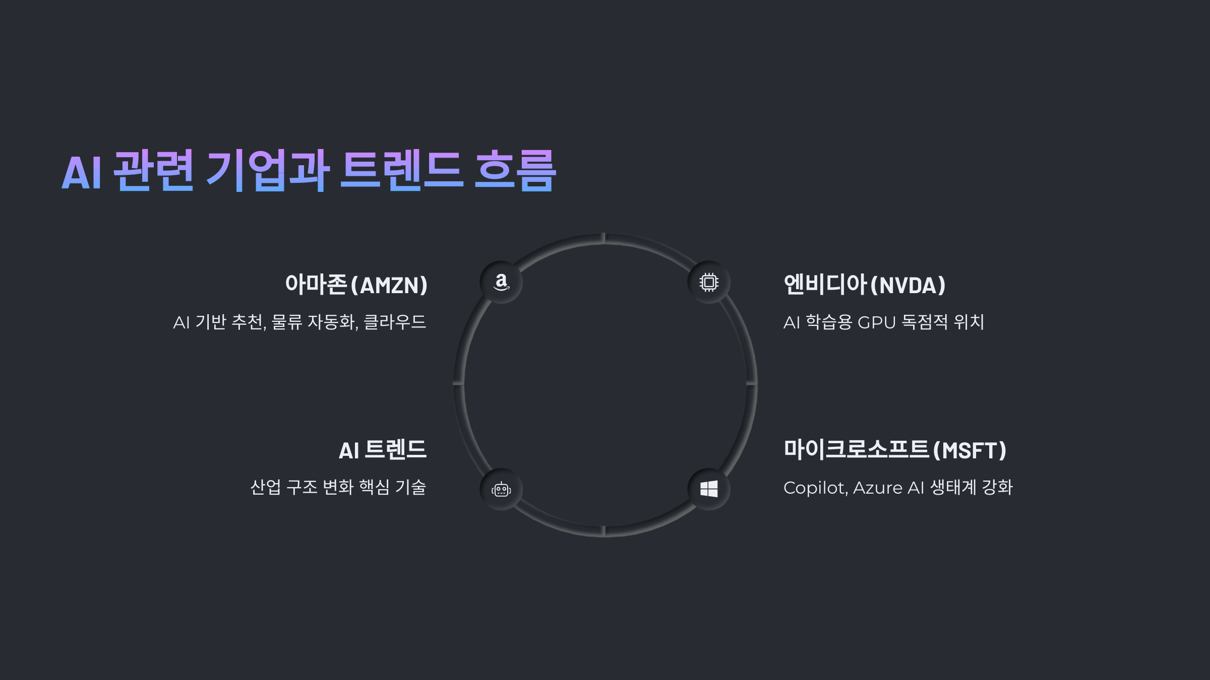 - 마이크로소프트 (MSFT) – Copilot, Azure AI 생태계 강화