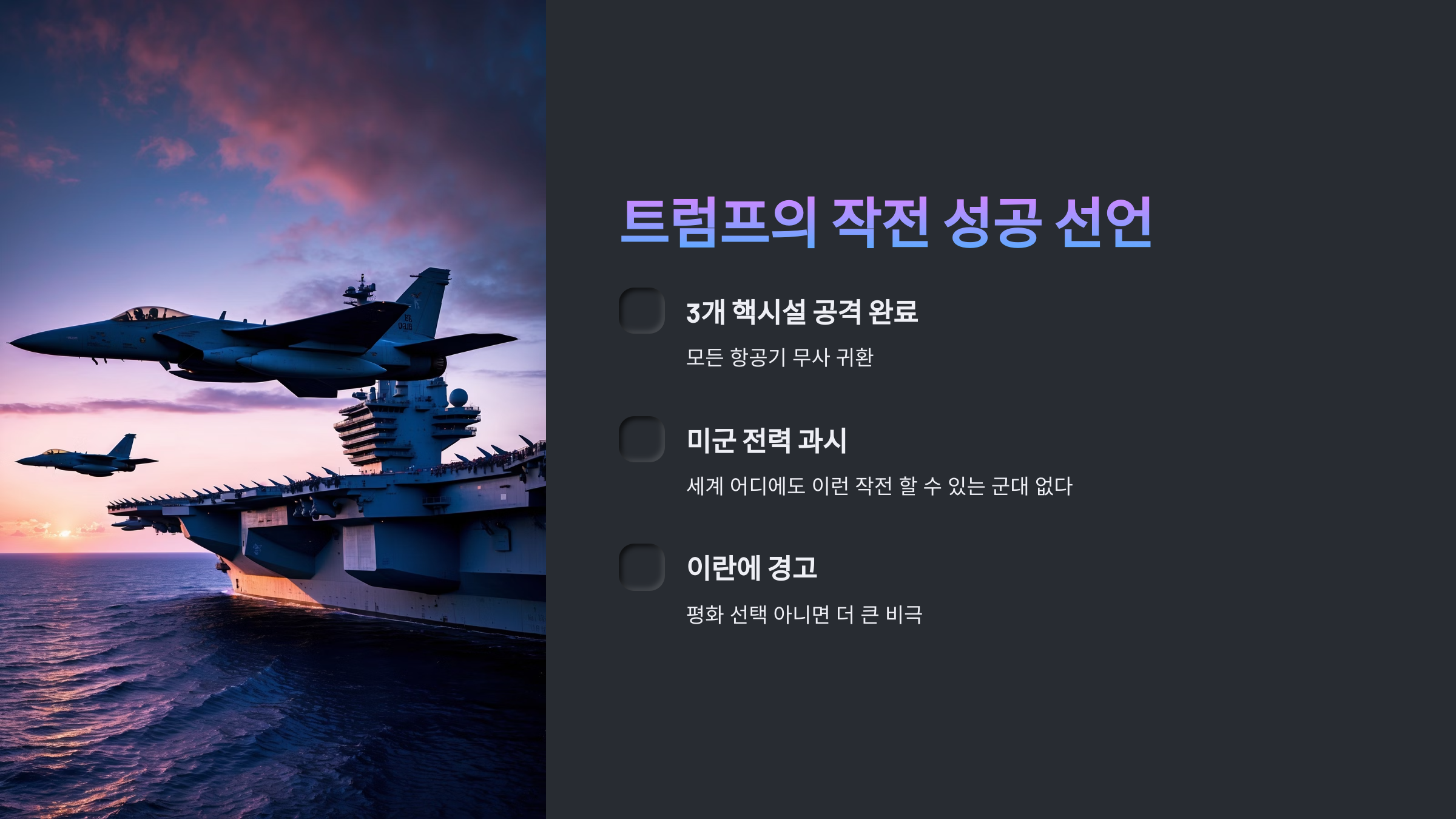 1. 트럼프의 작전 성공 선언 요약
