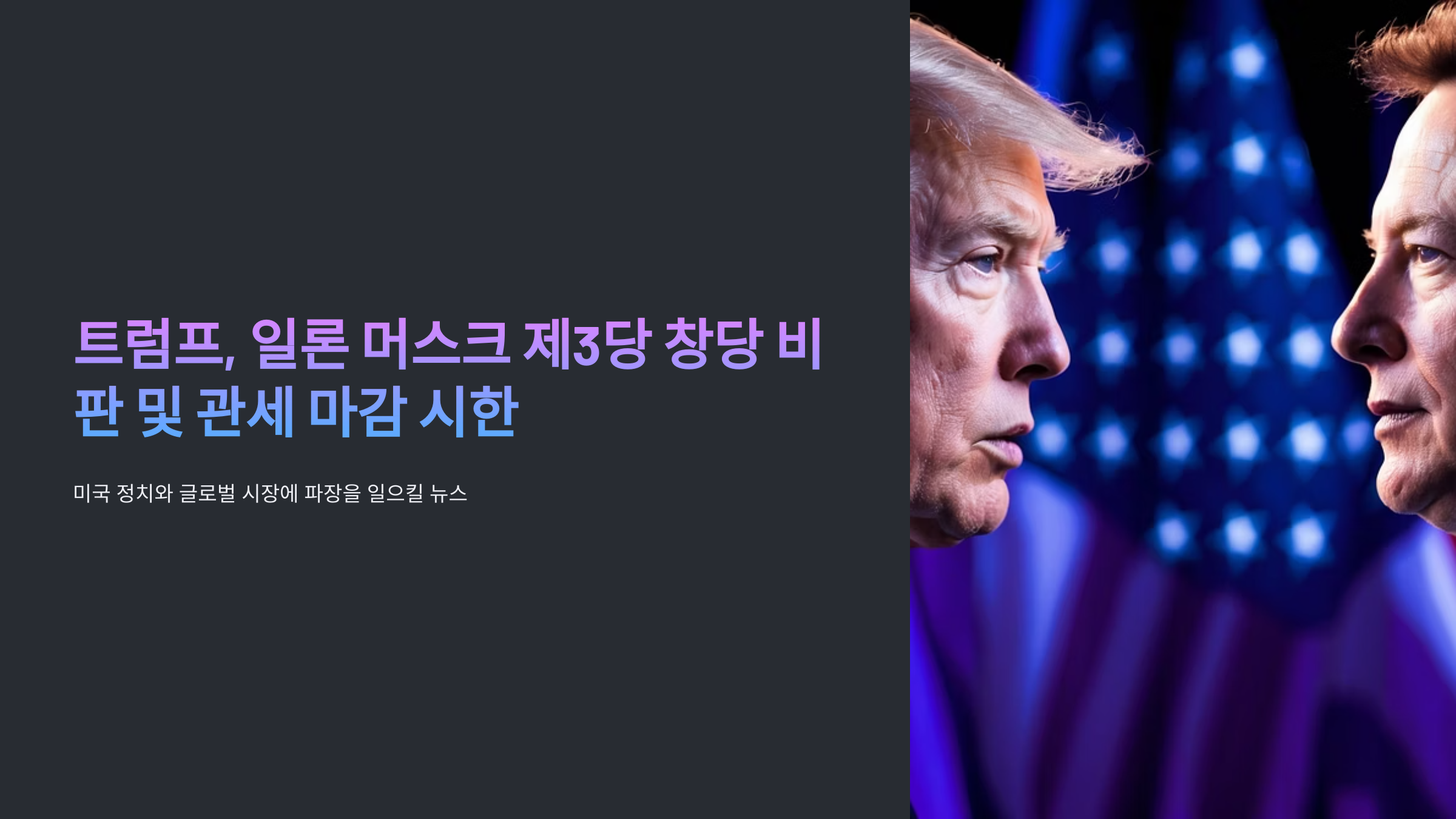 트럼프 대통령이 일론 머스크를 정면으로 비판하며 정치적 긴장감을 고조시키고 있고,