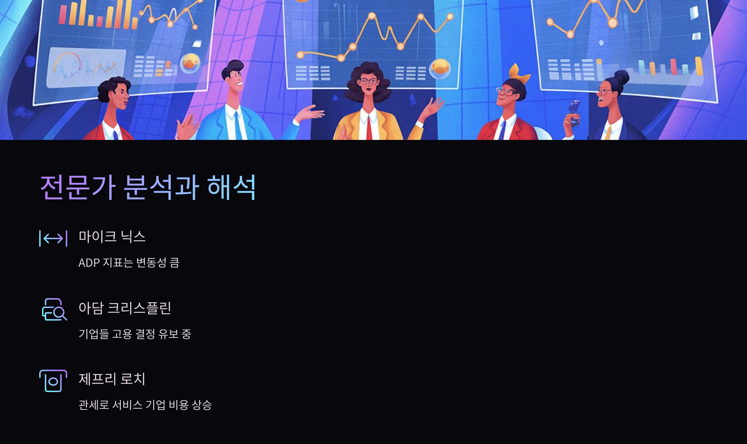 | 아담 크리스플린 (바이타나리지) | 기업들이 정책적 불확실성 속에 고용 결정을 유보 중 |