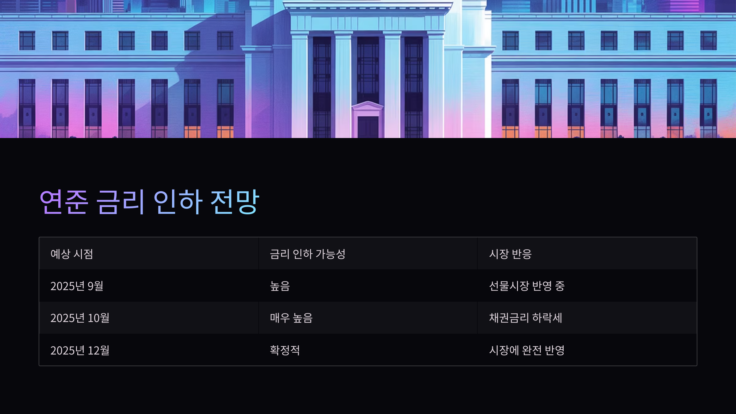 | 예상 시점 | 금리 인하 가능성 | 시장 반응 |