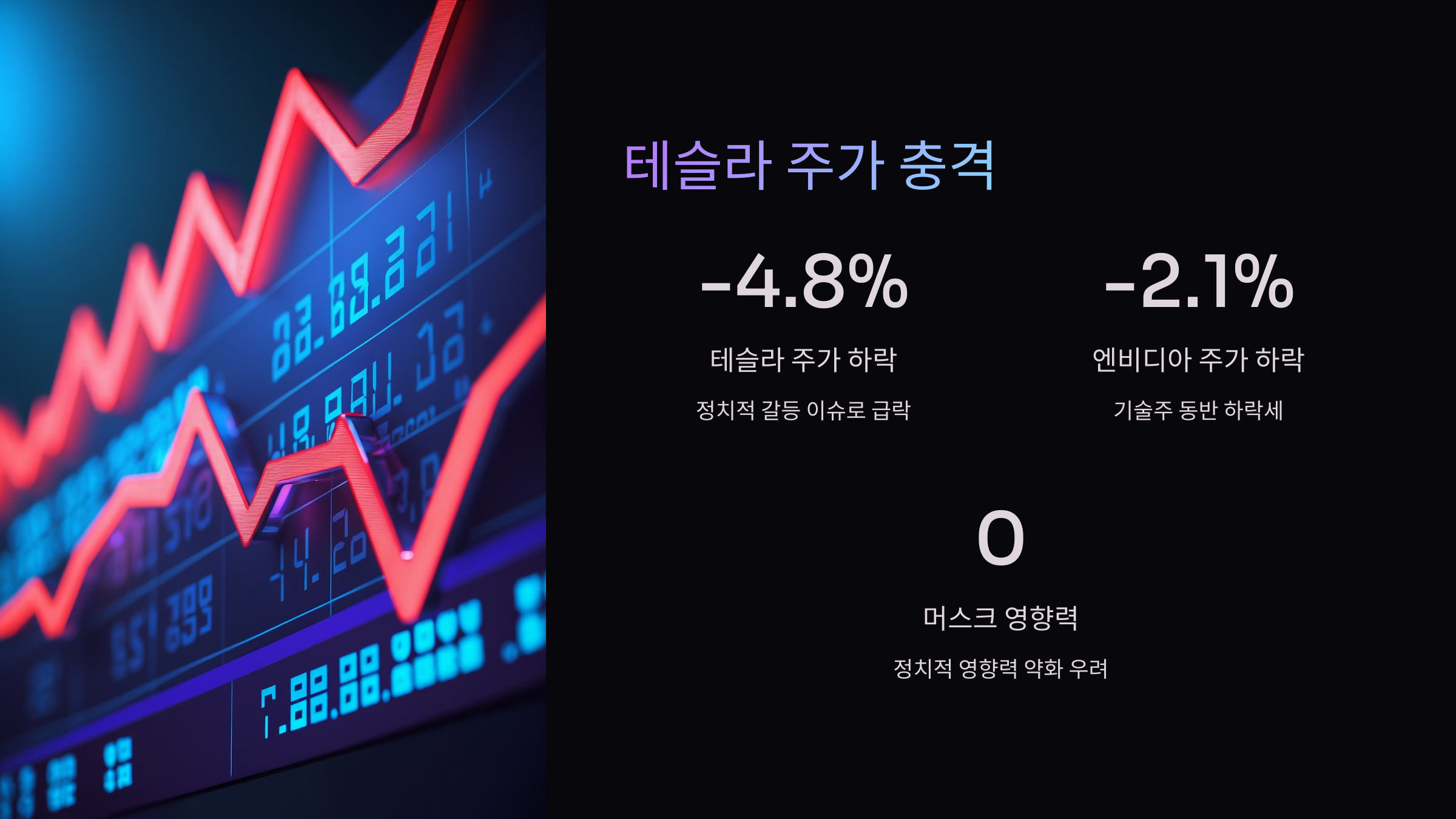 트럼프와 머스크의 충돌로 정책 불확실성이 커지며 테슬라 주가가 하락했습니다.