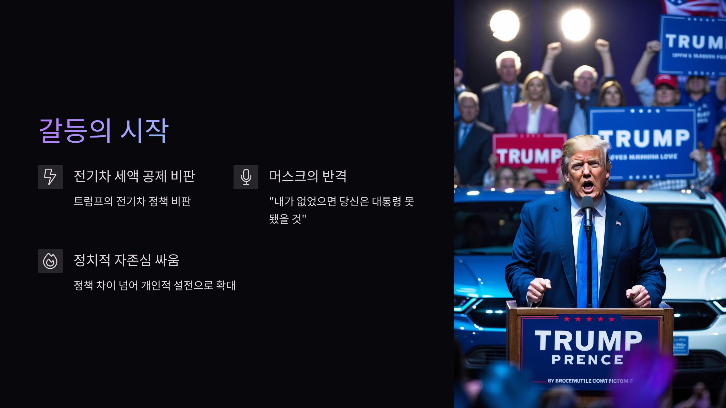 - 여론은 친트럼프 진영과 친머스크 진영으로 나뉘며 격론 확산