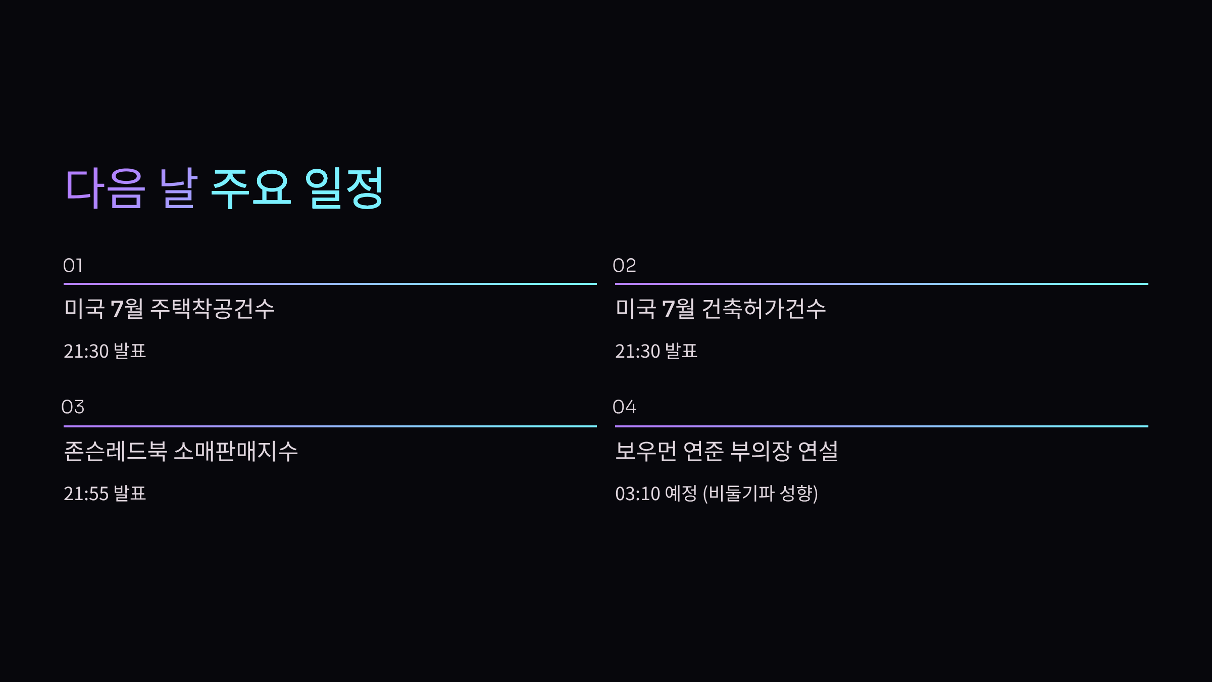 - 03:10 - 보우먼 연준 부의장 연설 (비둘기파 성향, 투표권 O)