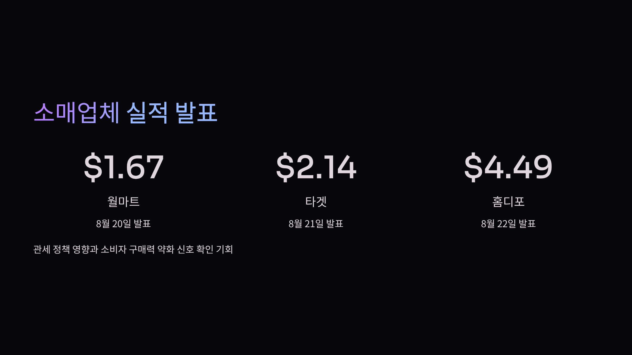 | 타겟 (Target) | 8월 21일 | $2.14 | 소비 위축 신호 반영 여부 |