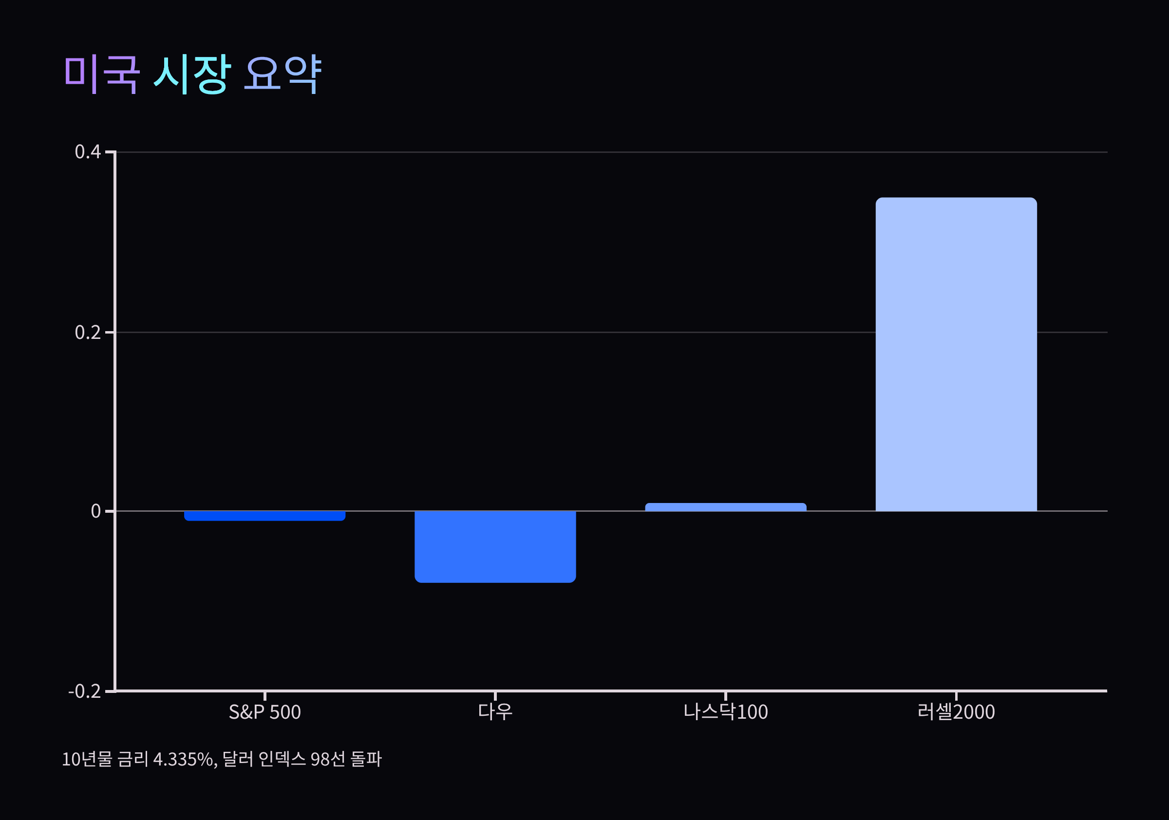 | 러셀2000 | 2,286.47 | 2,294.47 | +0.35% |
