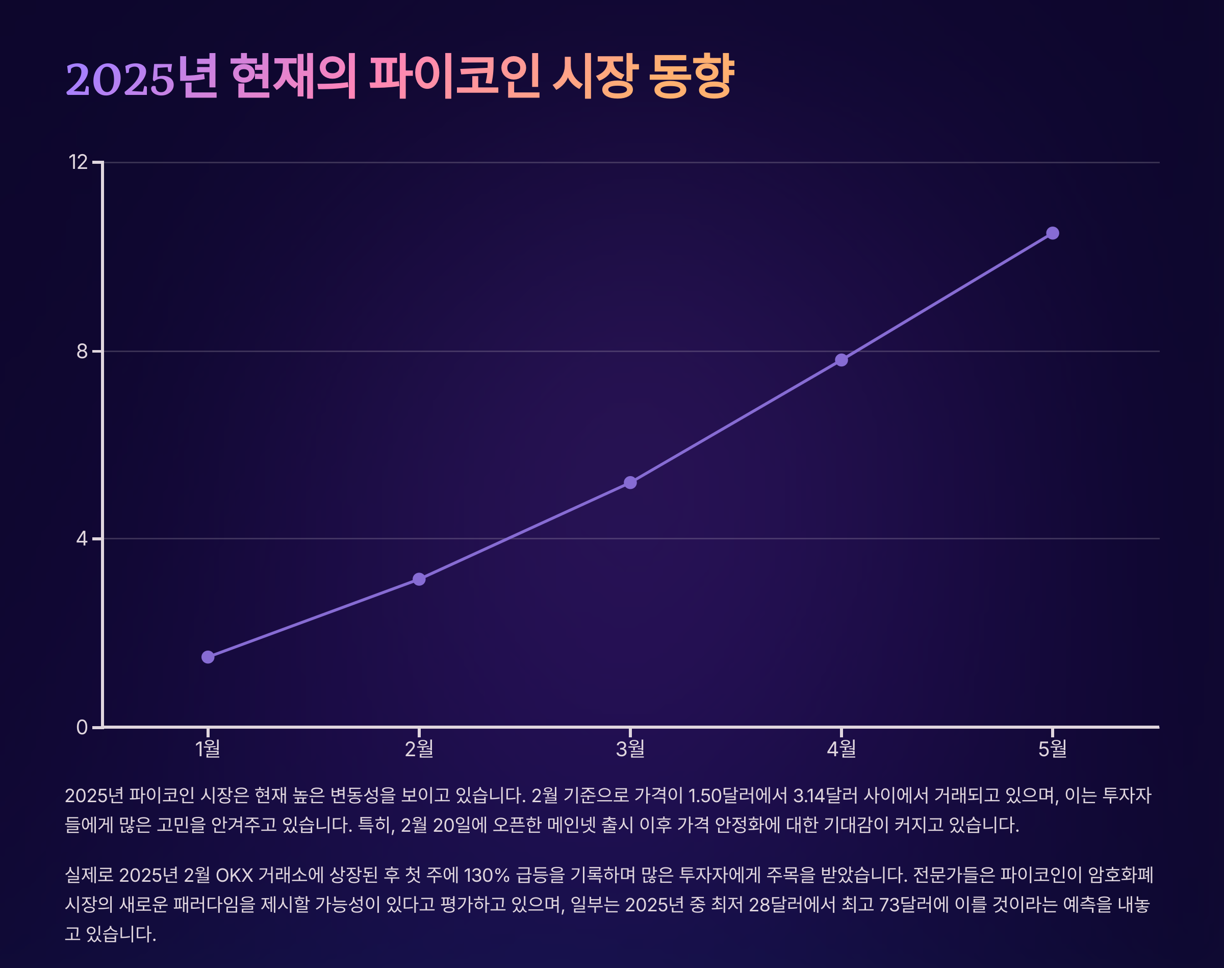 2025년 파이코인 시장은 현재 높은 변동성을 보이고 있습니다. 2월 기준으로 가격이 1.50달러에서 3.14달러 사이에서 거래되고 있으며, 이는 투자자들에게 많은 고민을 안겨주고 있습니다.