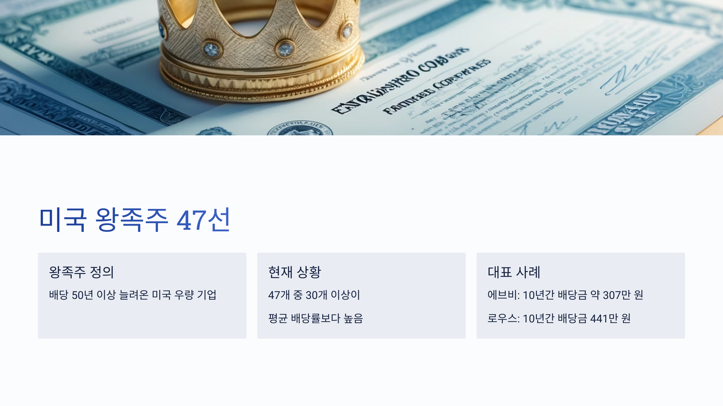 왕족주란 배당을 50년 이상 늘려온 미국 우량 기업들을 뜻합니다.