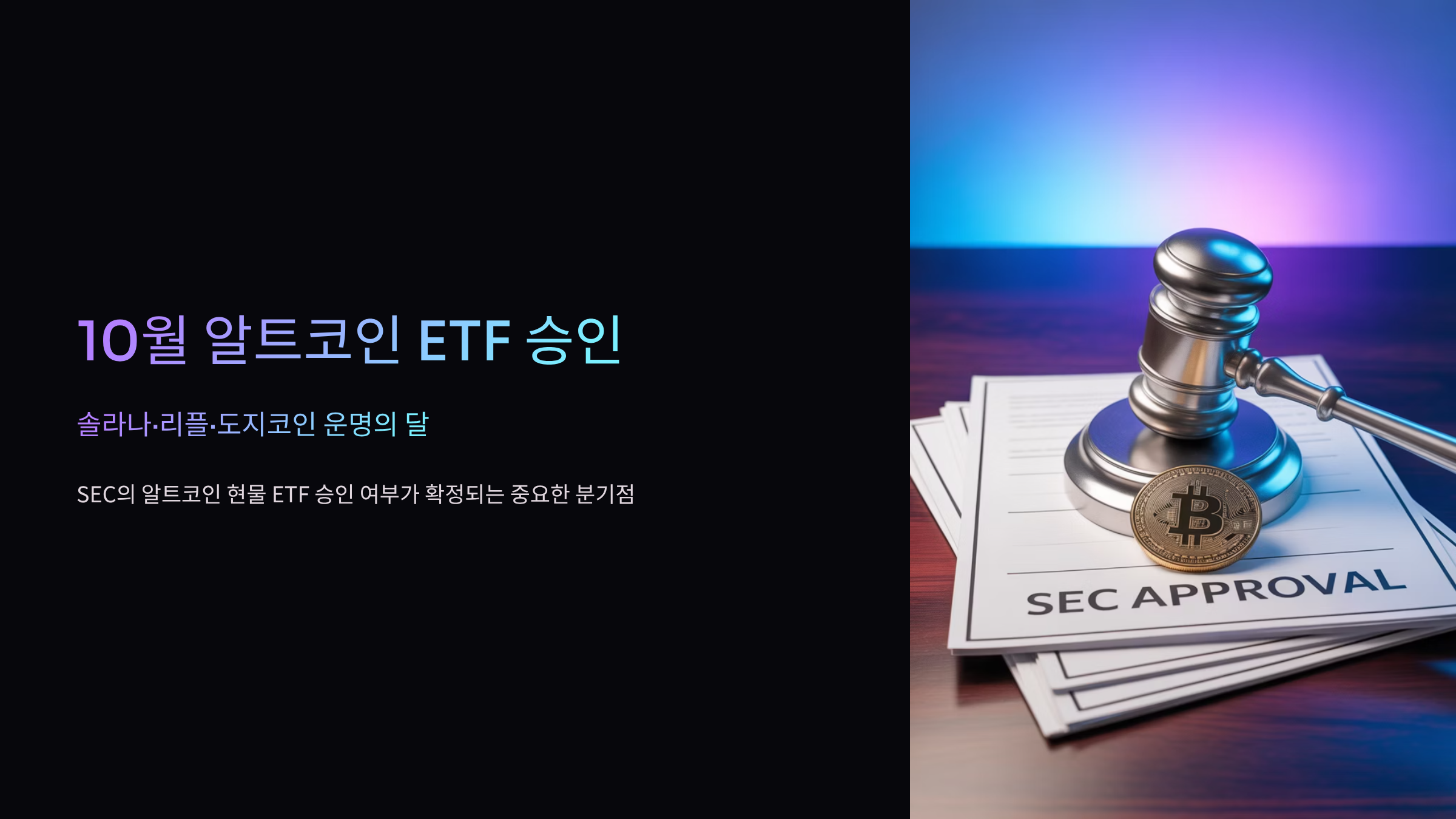 10월은 SEC가 다수 알트코인 현물 ETF의 승인 여부를 최종 결정하는 중요한 시기입니다.