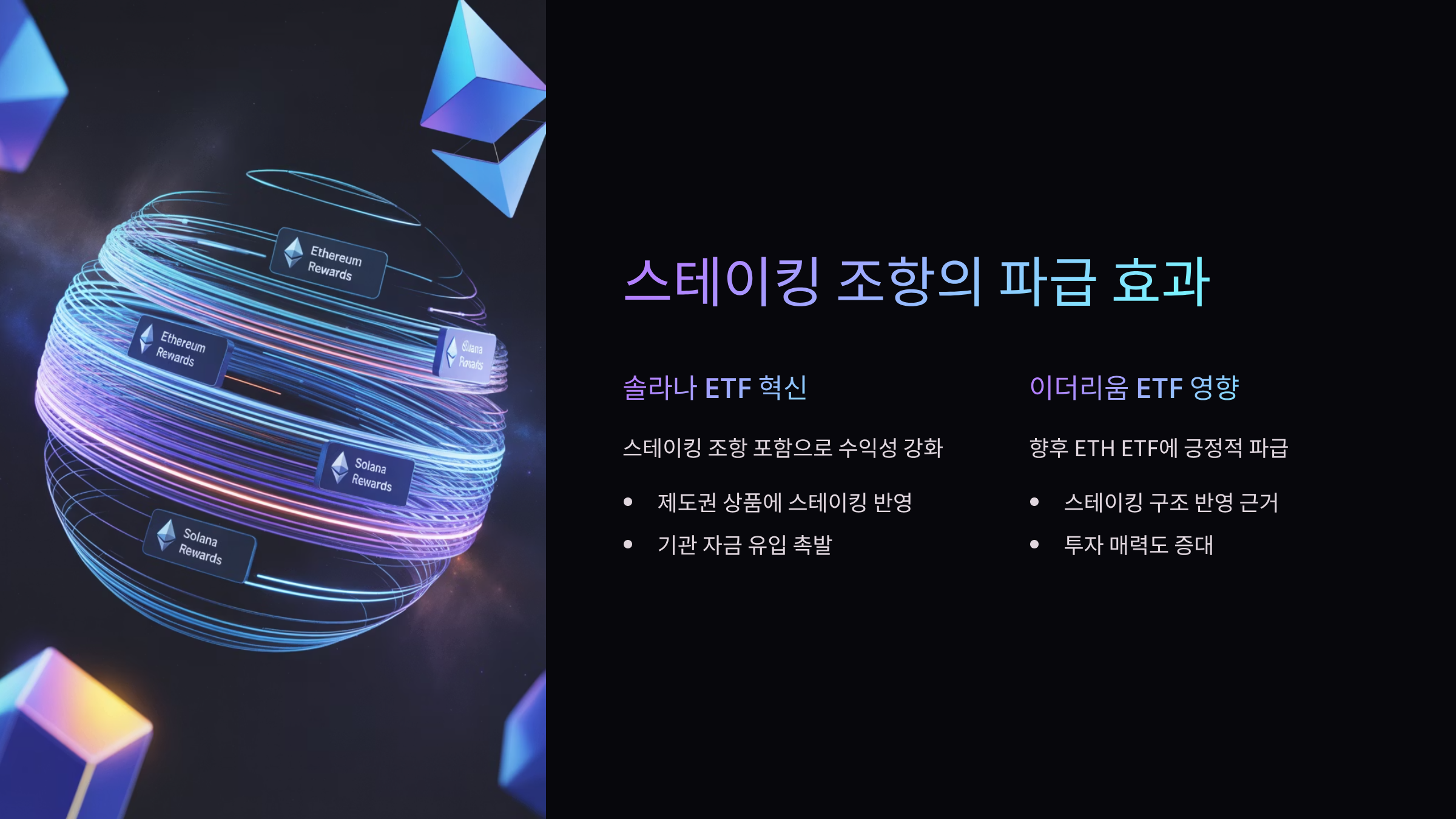 - 솔라나 ETF → 스테이킹 가능성 반영