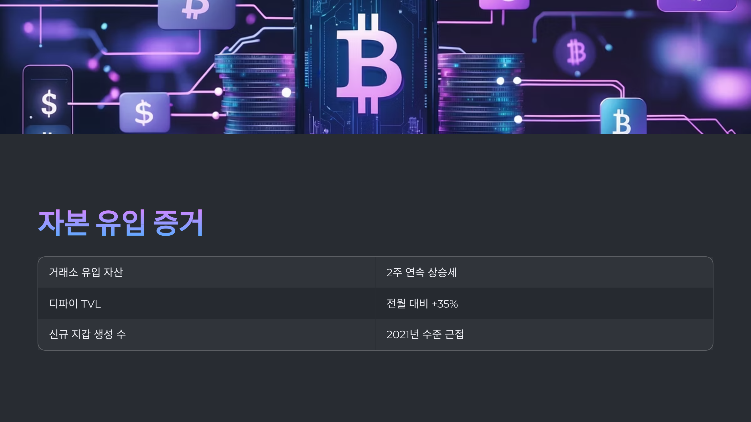디지털 자산 펀드와 거래소로의 자금 유입이 다시 급증하고 있으며,