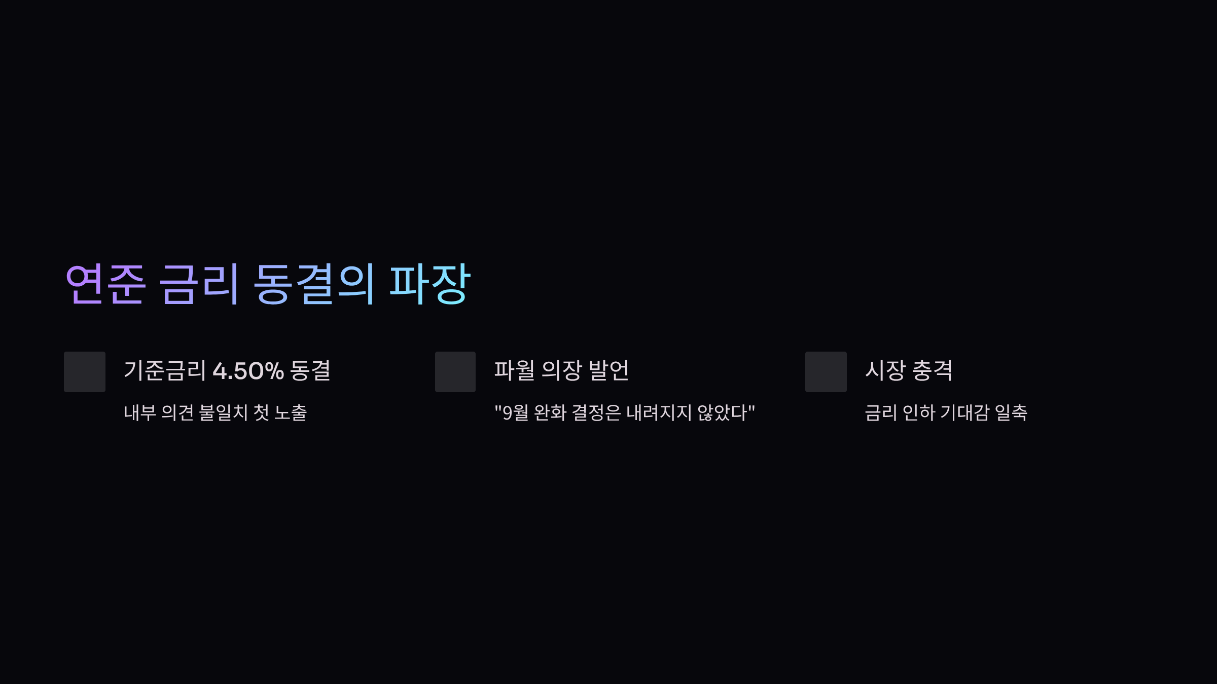 이러한 발언은 금리 인하 기대를 뒤집으며 채권금리 상승과 주가 하락을 동시에 유발했습니다.