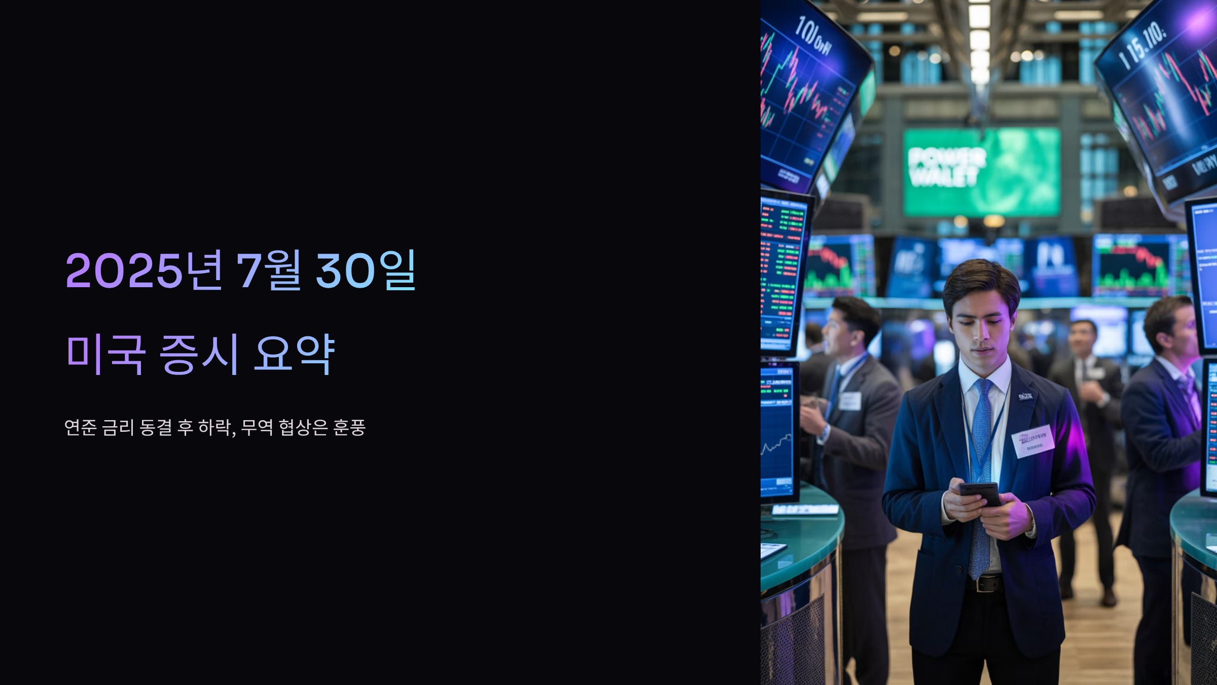 2025년 7월 30일 미국 증시 요약: 연준 금리 동결 후 하락, 무역 협상은 훈풍