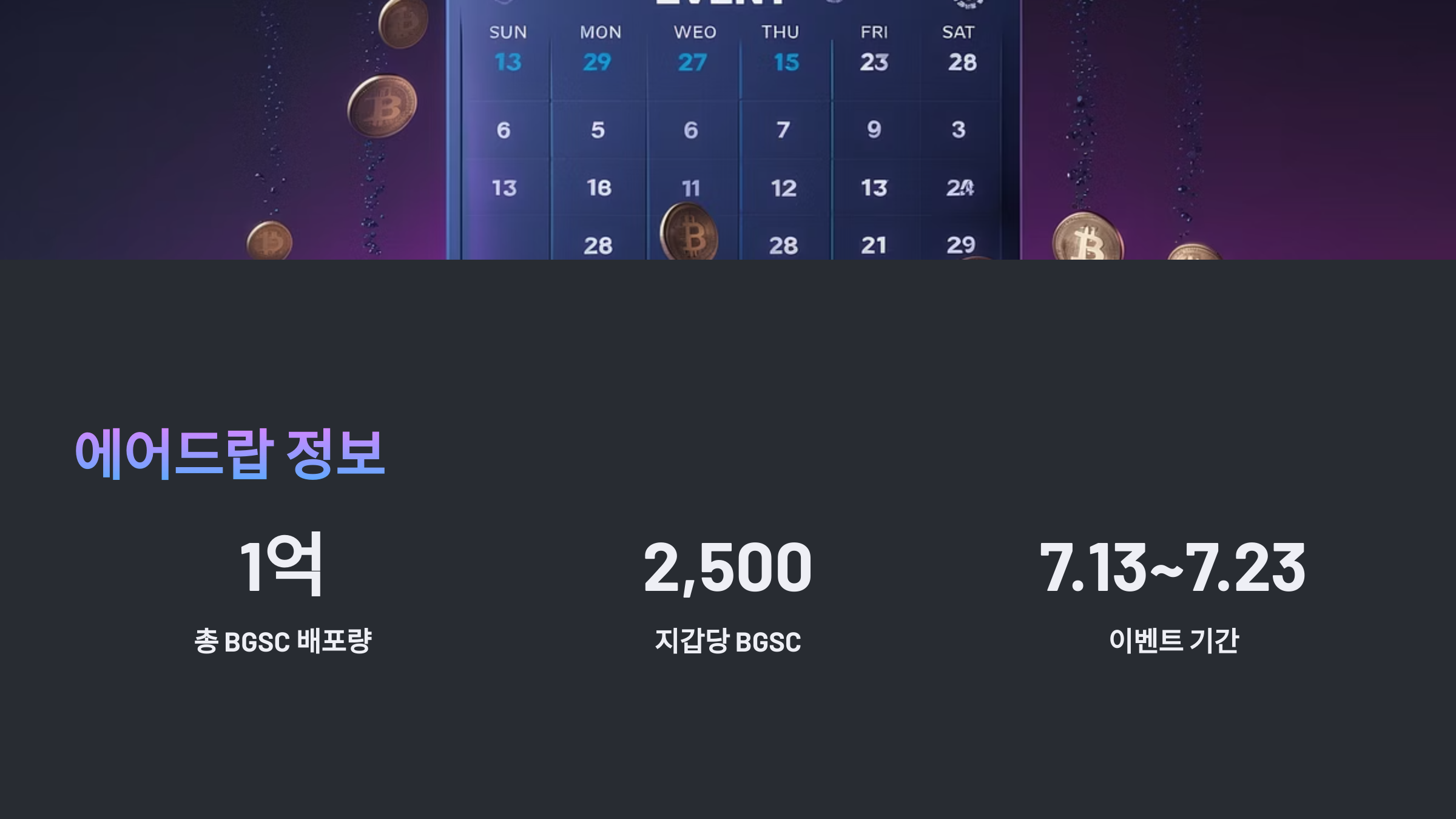| 에어드랍 총량 | 100,000,000 BGSC |