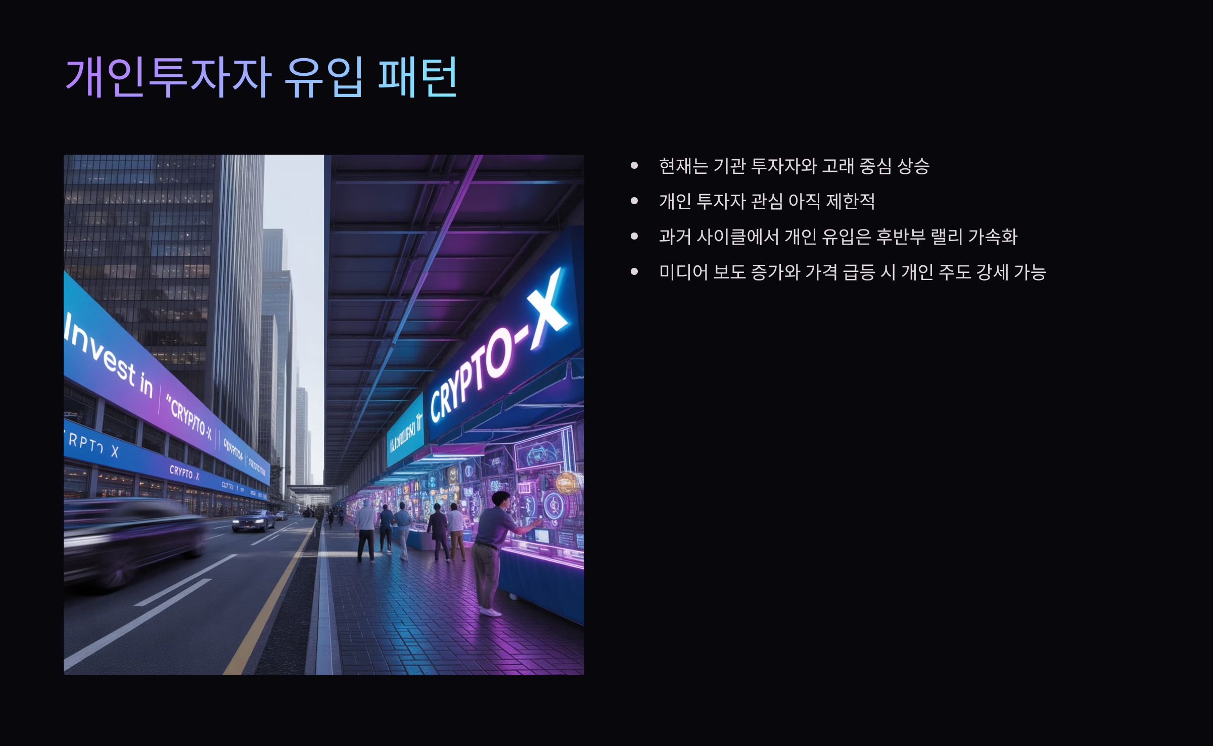 - 과거 사이클에서도 개인 투자자 유입은 후반부 랠리를 가속화시키는 핵심 요인.