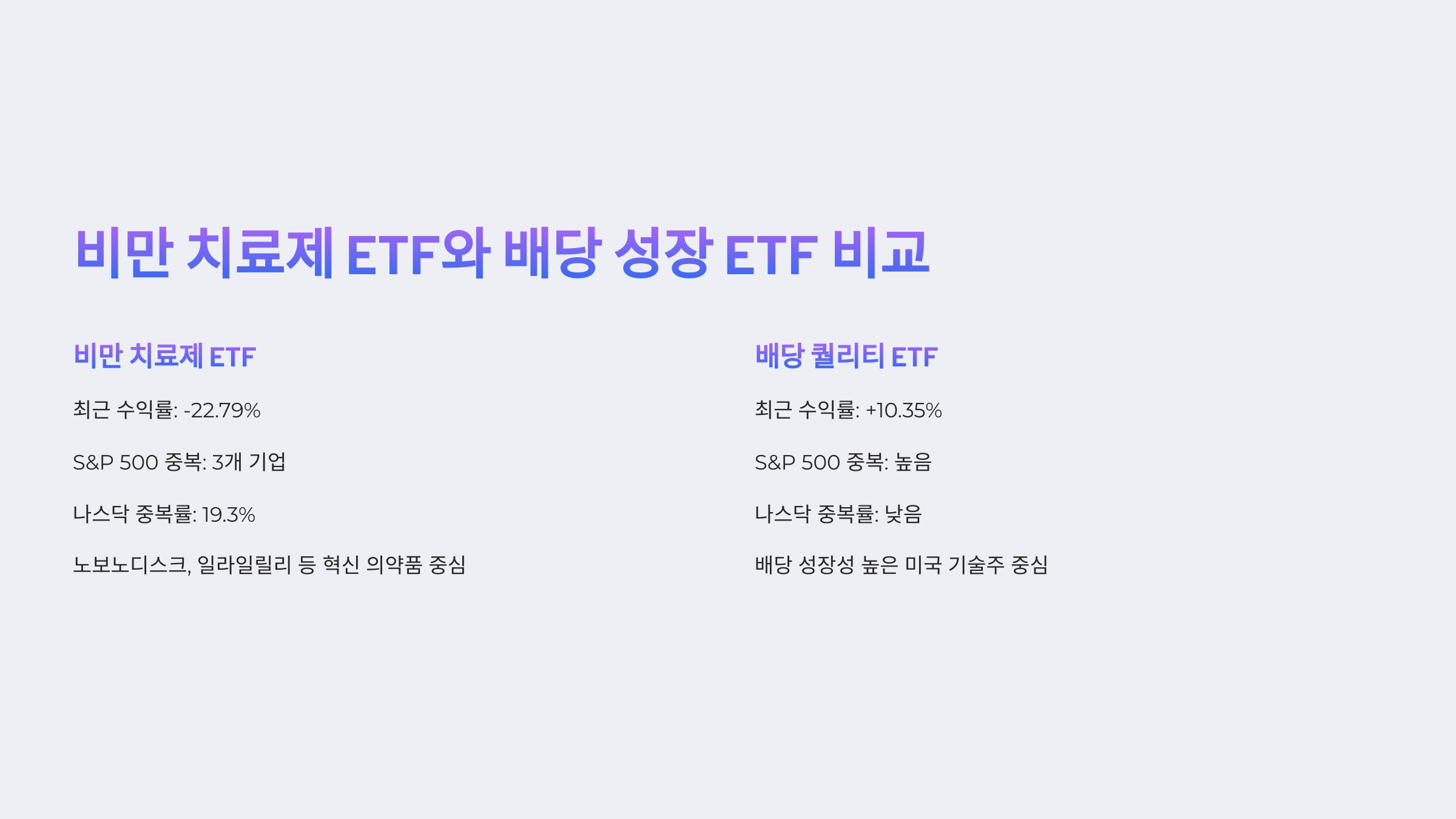 비만 치료제 ETF와 배당 성장 ETF 비교