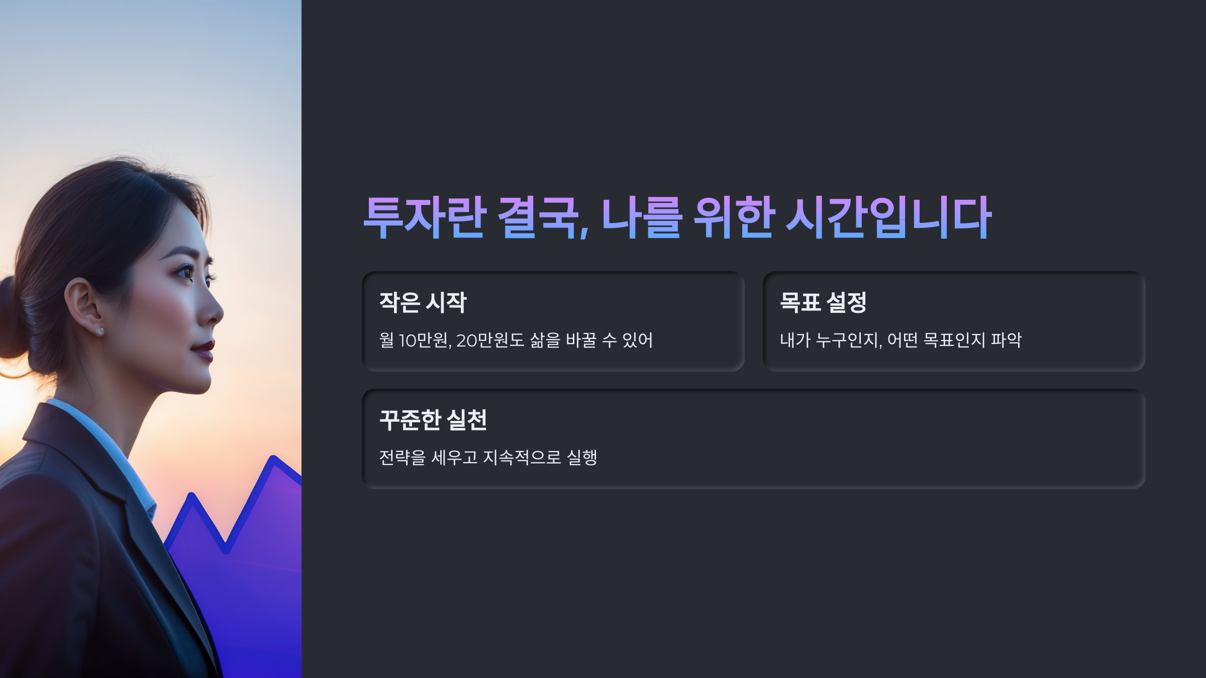 지금 당장은 작게 느껴질 수 있는 월 10만 원, 20만 원의 투자도 시간이