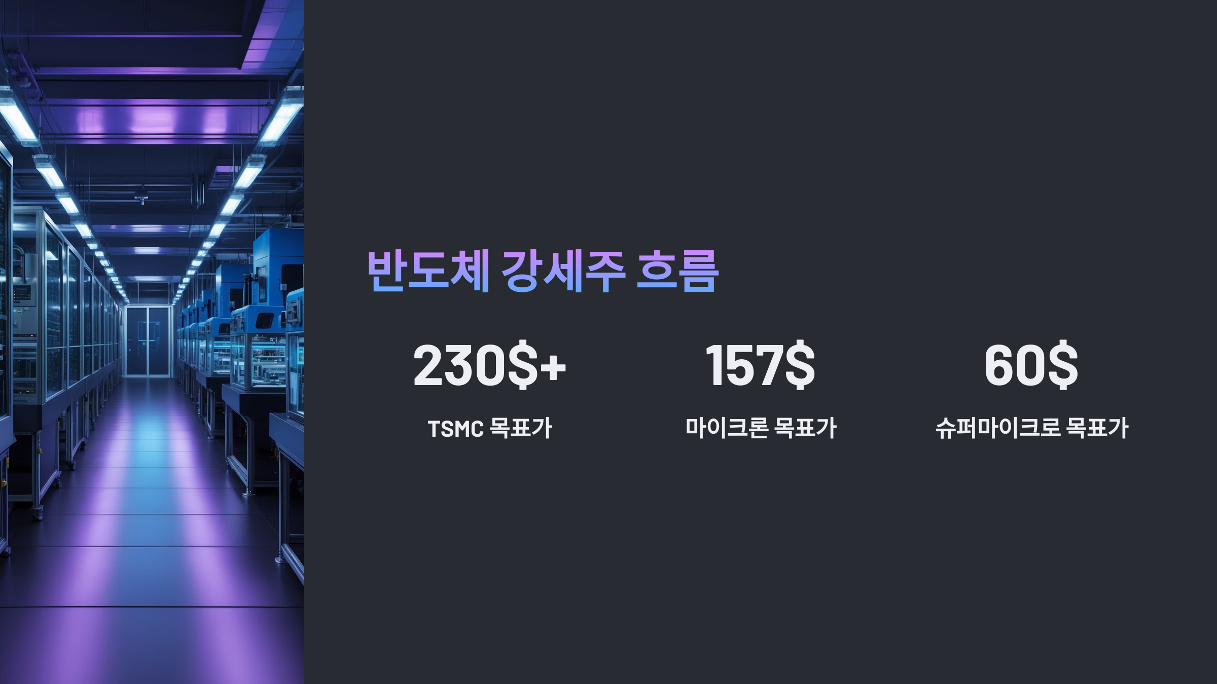 | TSMC | 218달러 | 전고점 돌파, 강세 유지 | 230달러 이상 |