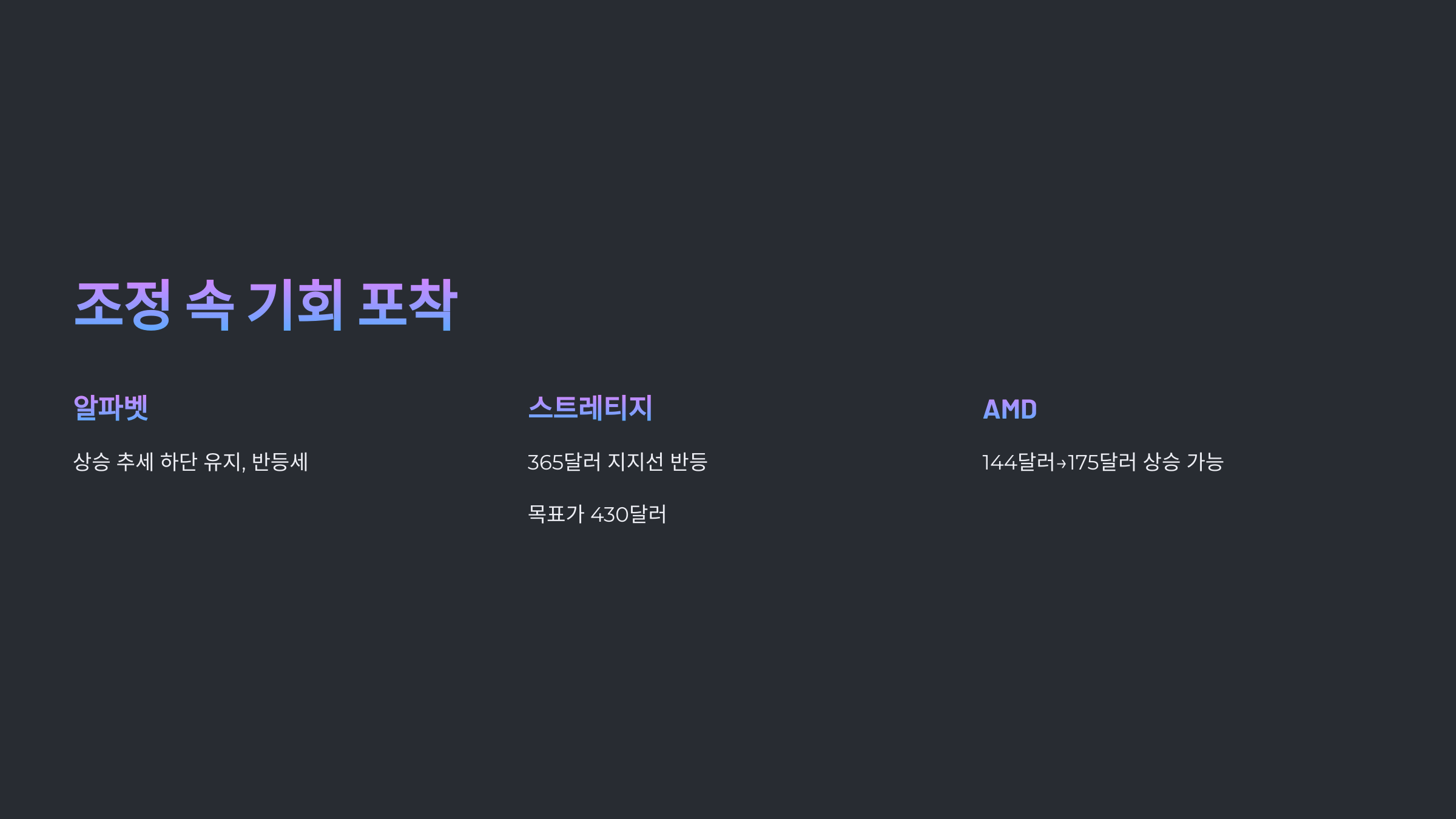 - 알파벳·스트레티지·AMD: 조정 속 기회 포착
