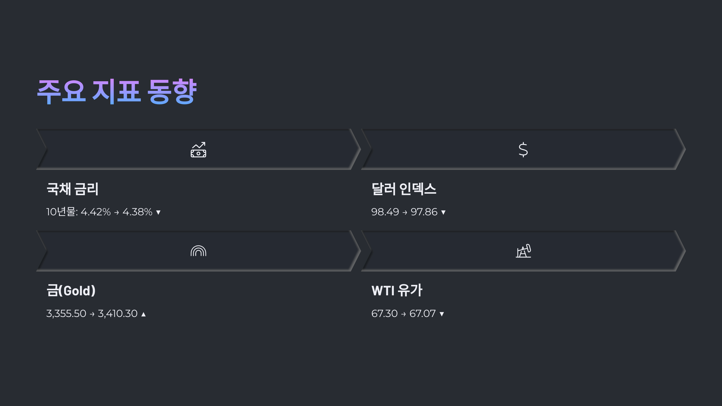 | 10년 미국 국채 수익률 | 4.420% | 4.380% | ▼ |