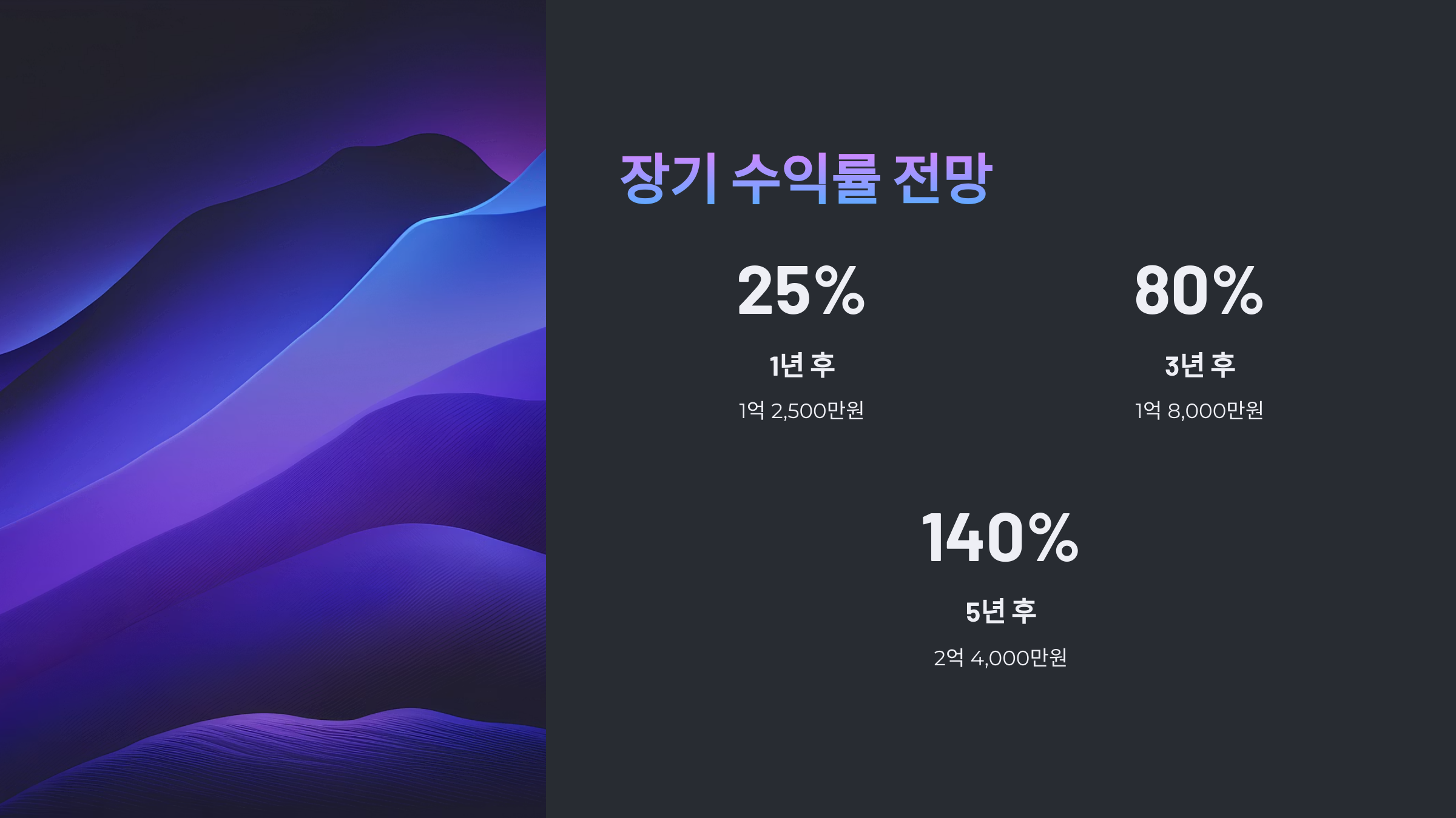 | 기간 | 예상 수익률 | 1억 투자 시 자산 |