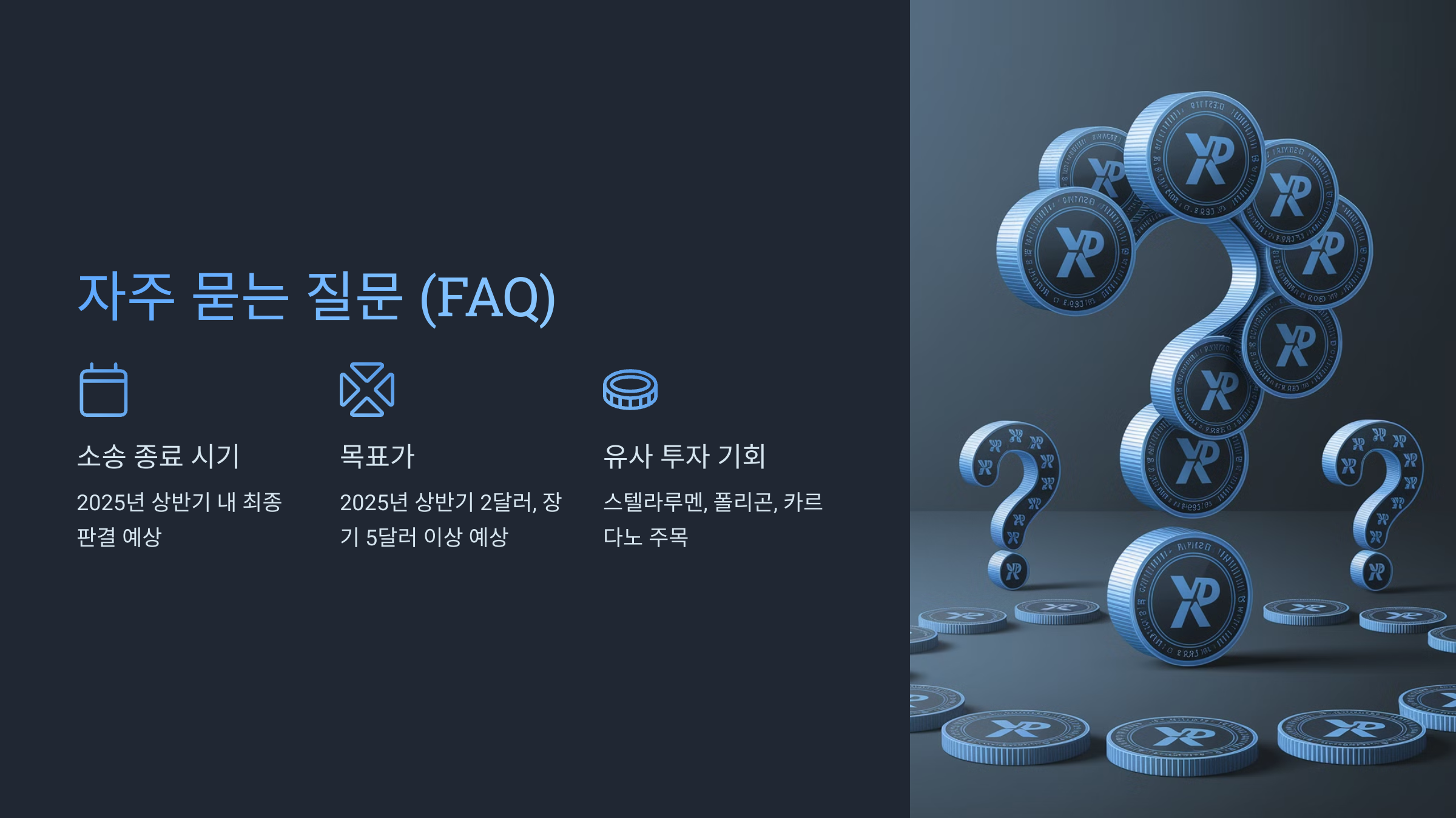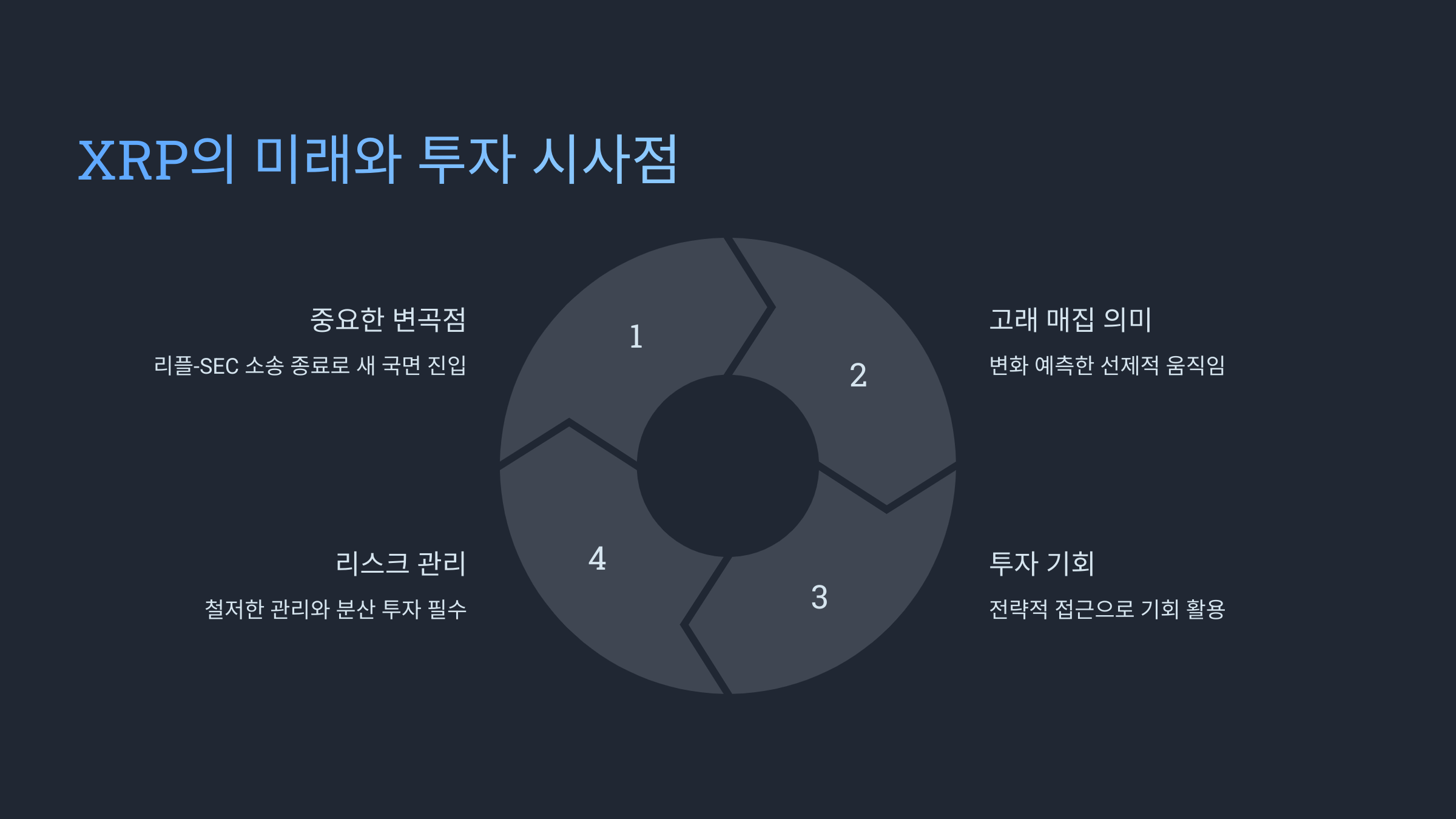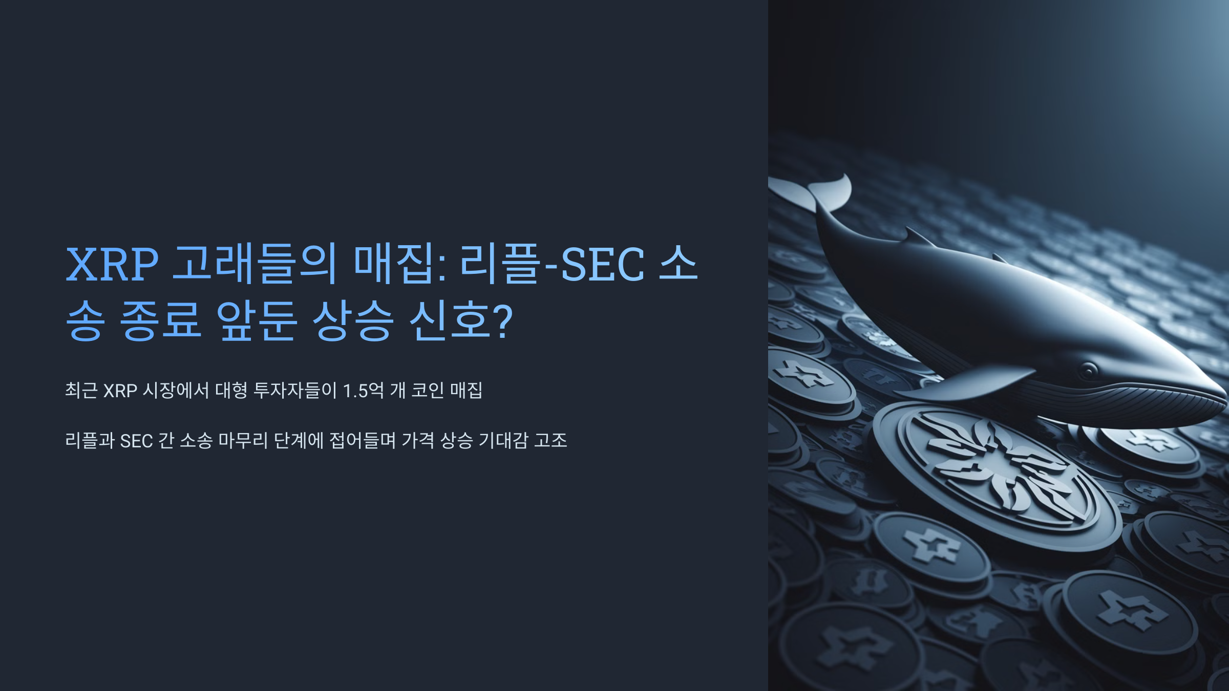 오늘은 XRP 고래들의 매집 현황과 리플-SEC 소송 종료에 따른 투자 전략에 대해 이야기해봤는데요.