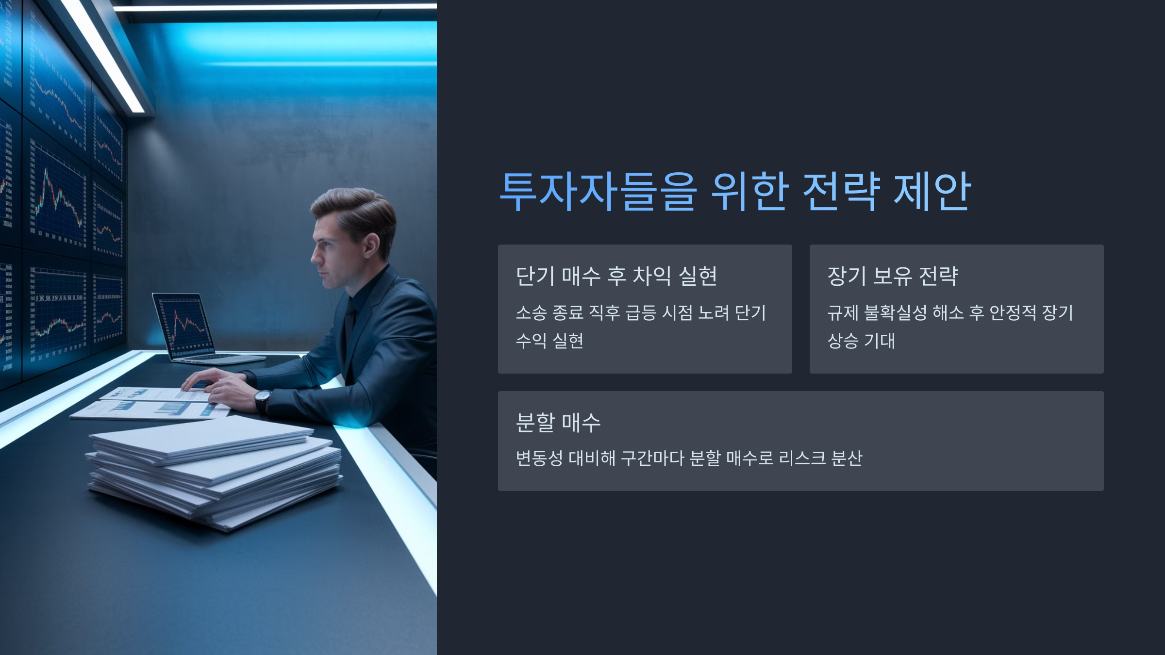 | 단기 매수 후 차익 실현 | 소송 종료 직후 급등이 예상되는 시점을 노려 단기 수익을 실현 |