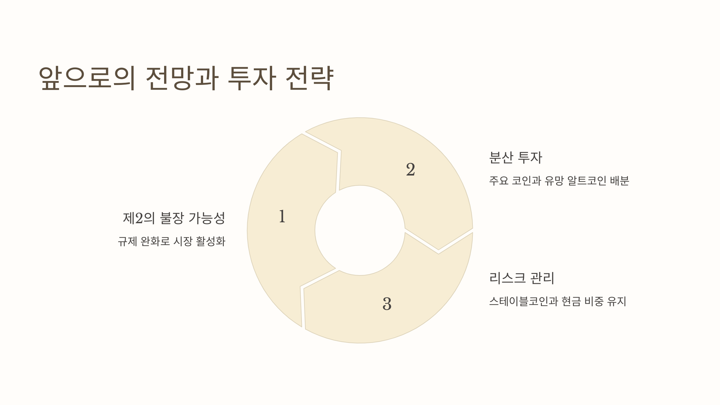 | 분산 투자 | 주요 코인뿐 아니라 유망 알트코인에 자산 배분 |