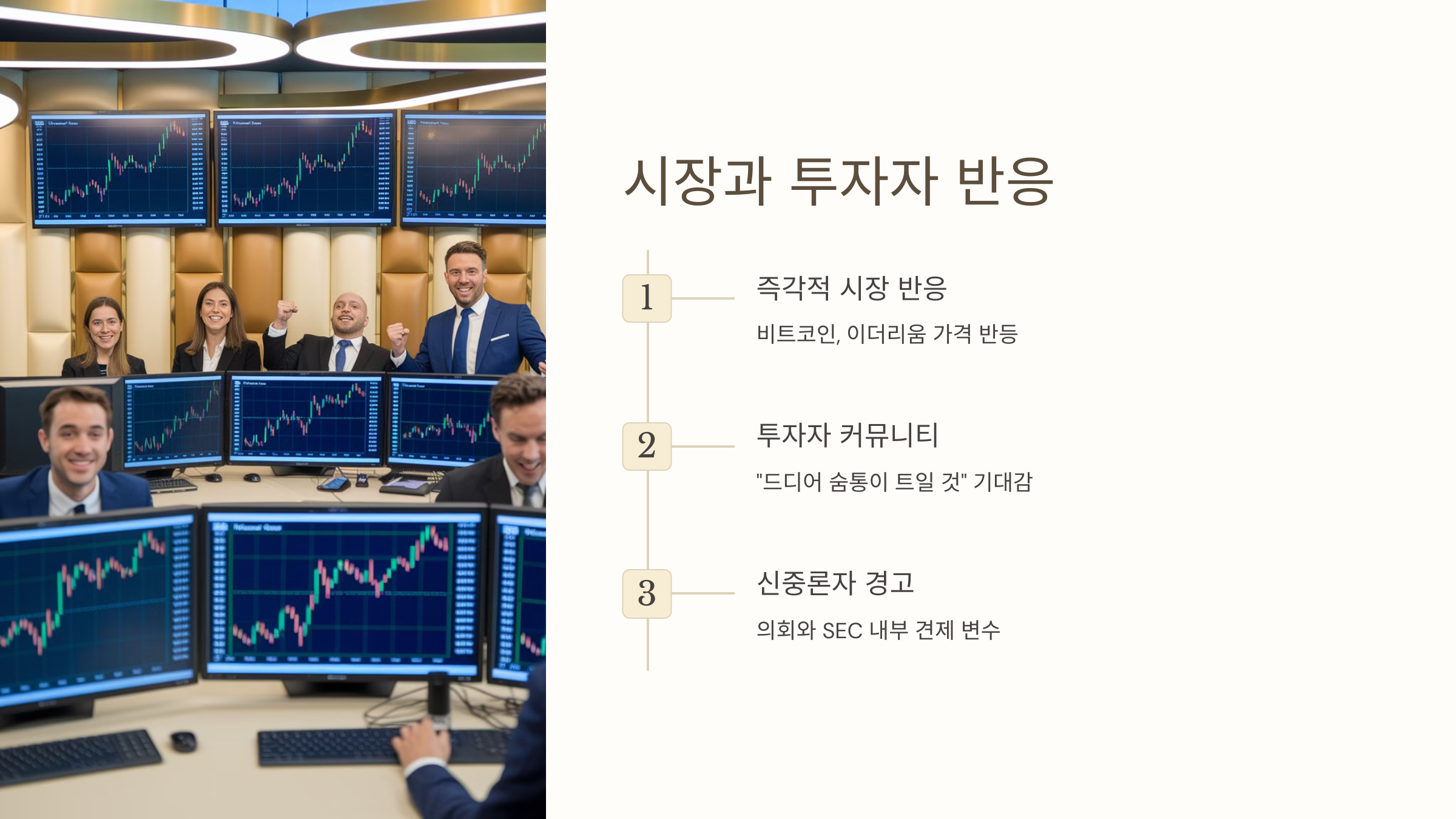 그렇지만 일부 신중론자들은 여전히 의회와 SEC 내부의 견제가 변수가 될 수 있다고 경고하고 있습니다.