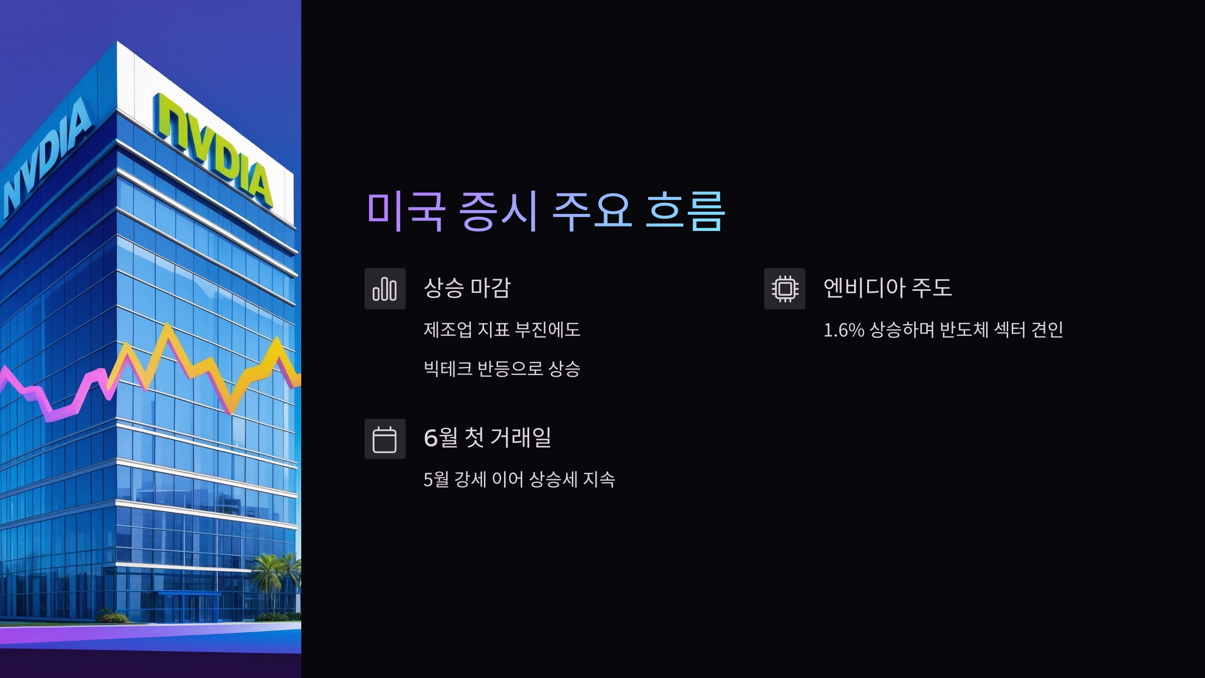 특히 엔비디아 등 반도체 주가 상승이 시장 심리를 견인했습니다.