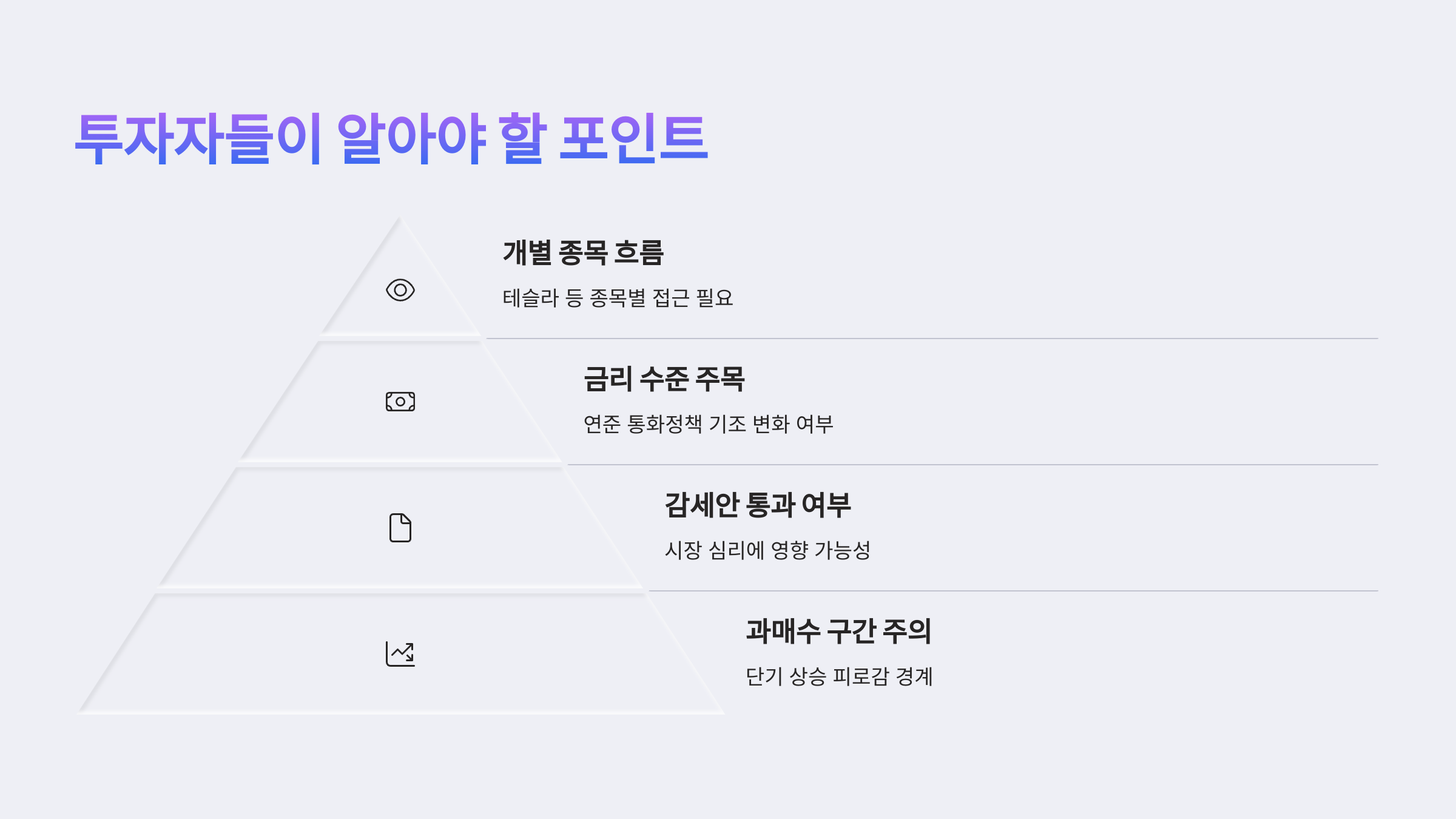 - 테슬라와 같은 개별 종목 흐름에 주의 깊게 접근