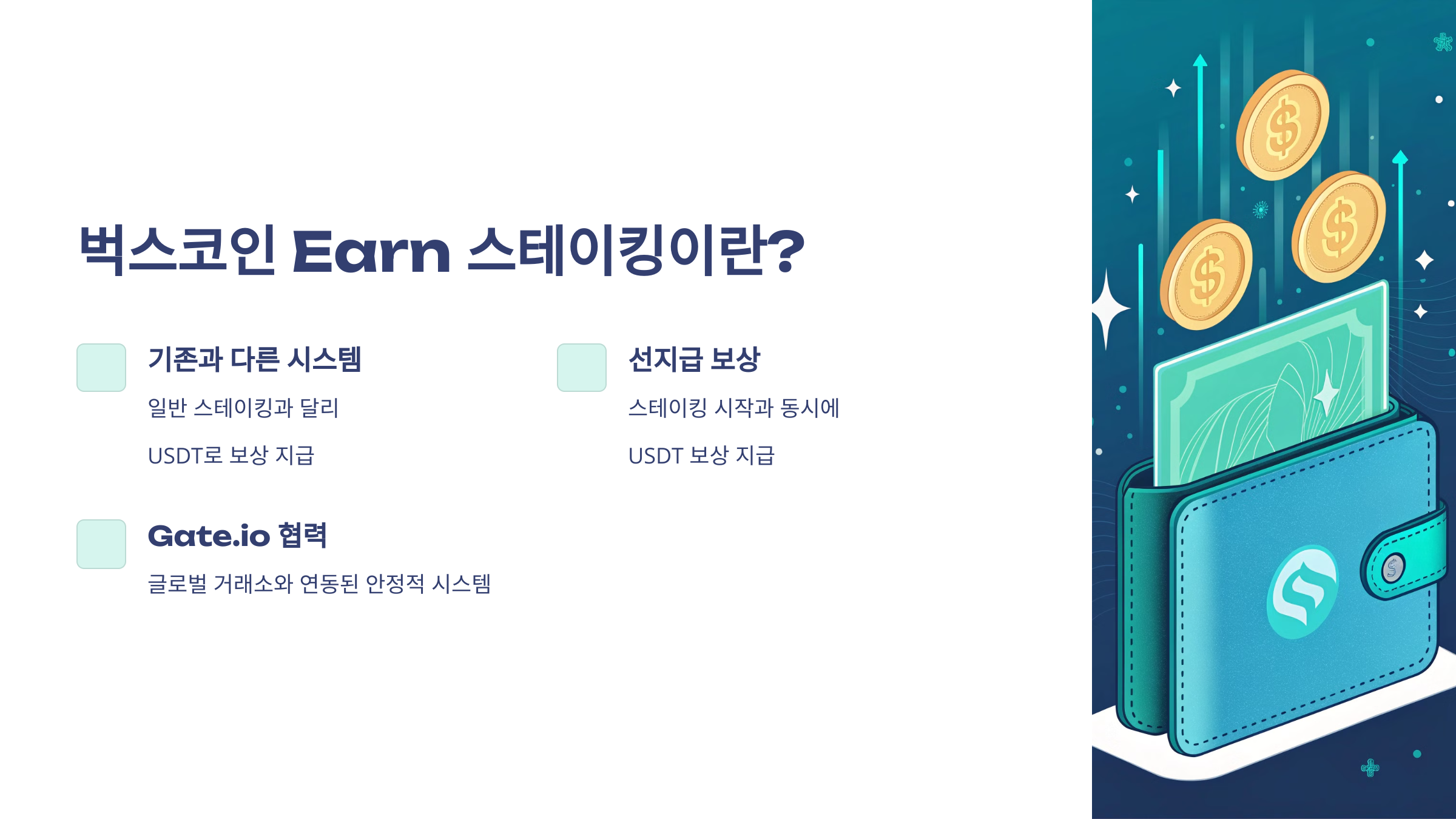 | Gate.io와 협력 운영 | 글로벌 거래소 Gate.io의 Earn 시스템과 연동 |