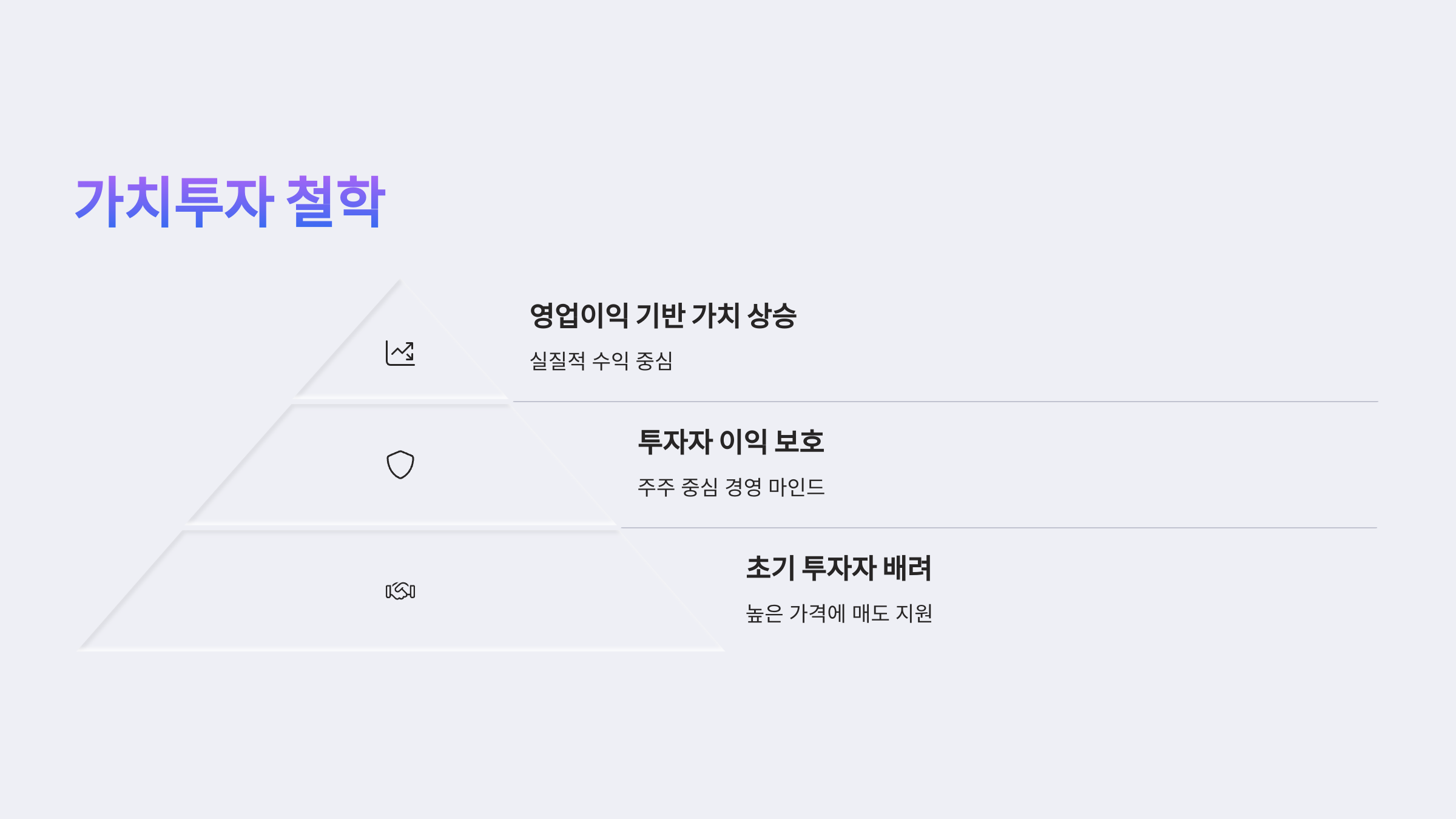 - 실적과 수익에 기반한 장기적 가치 상승 노림