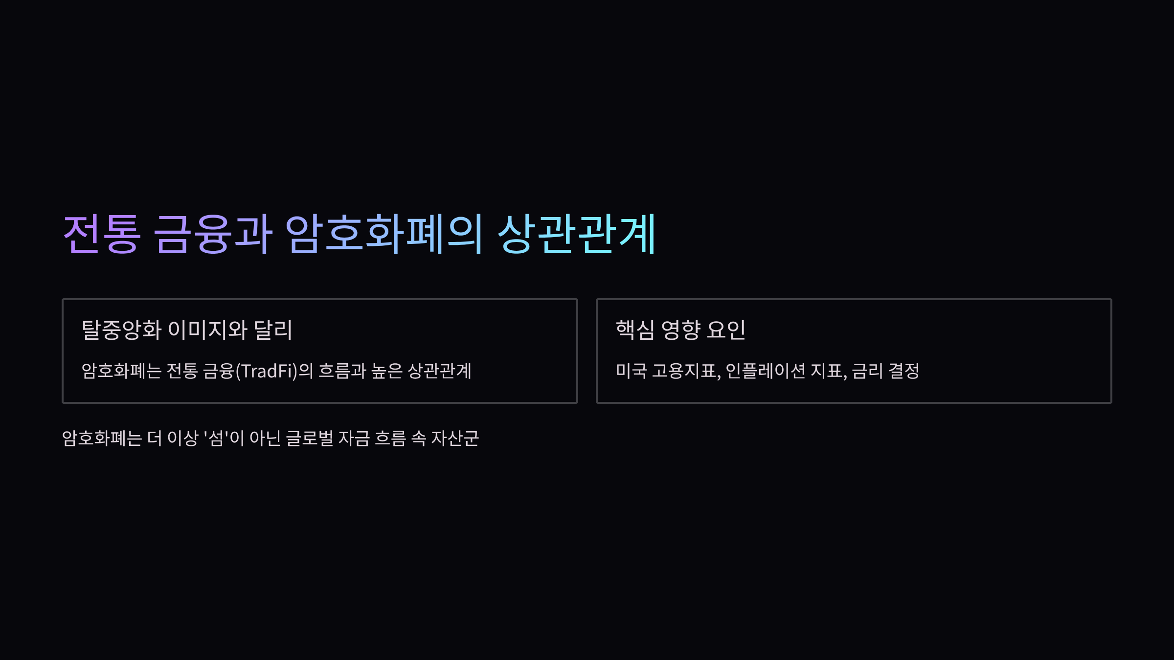 달리 전통 금융(TradFi)의 흐름과 높은 상관관계를 보이고 있습니다.