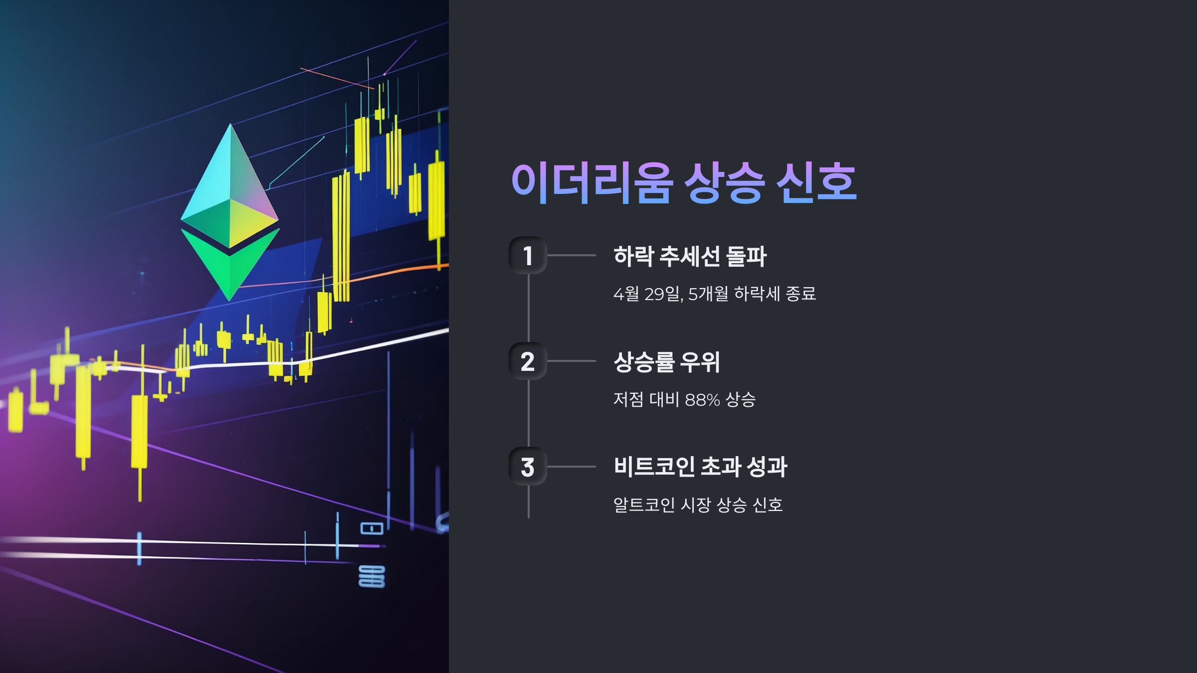 | 이더리움 하락 돌파 | 4월 29일, 5개월간의 하락 추세선 돌파 |