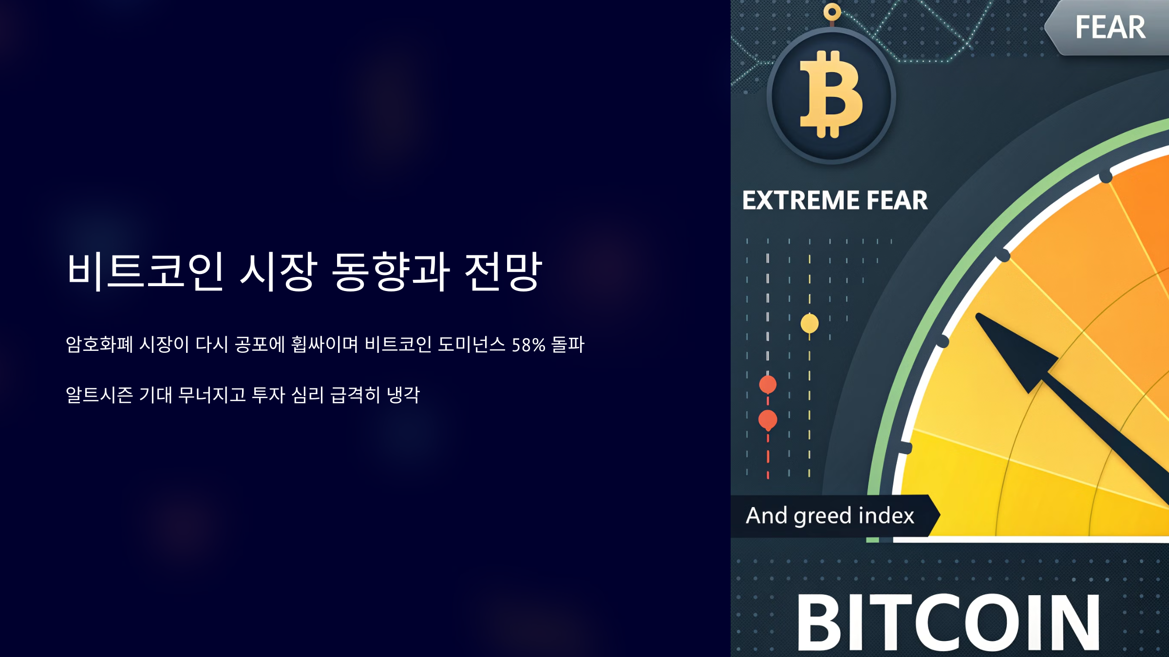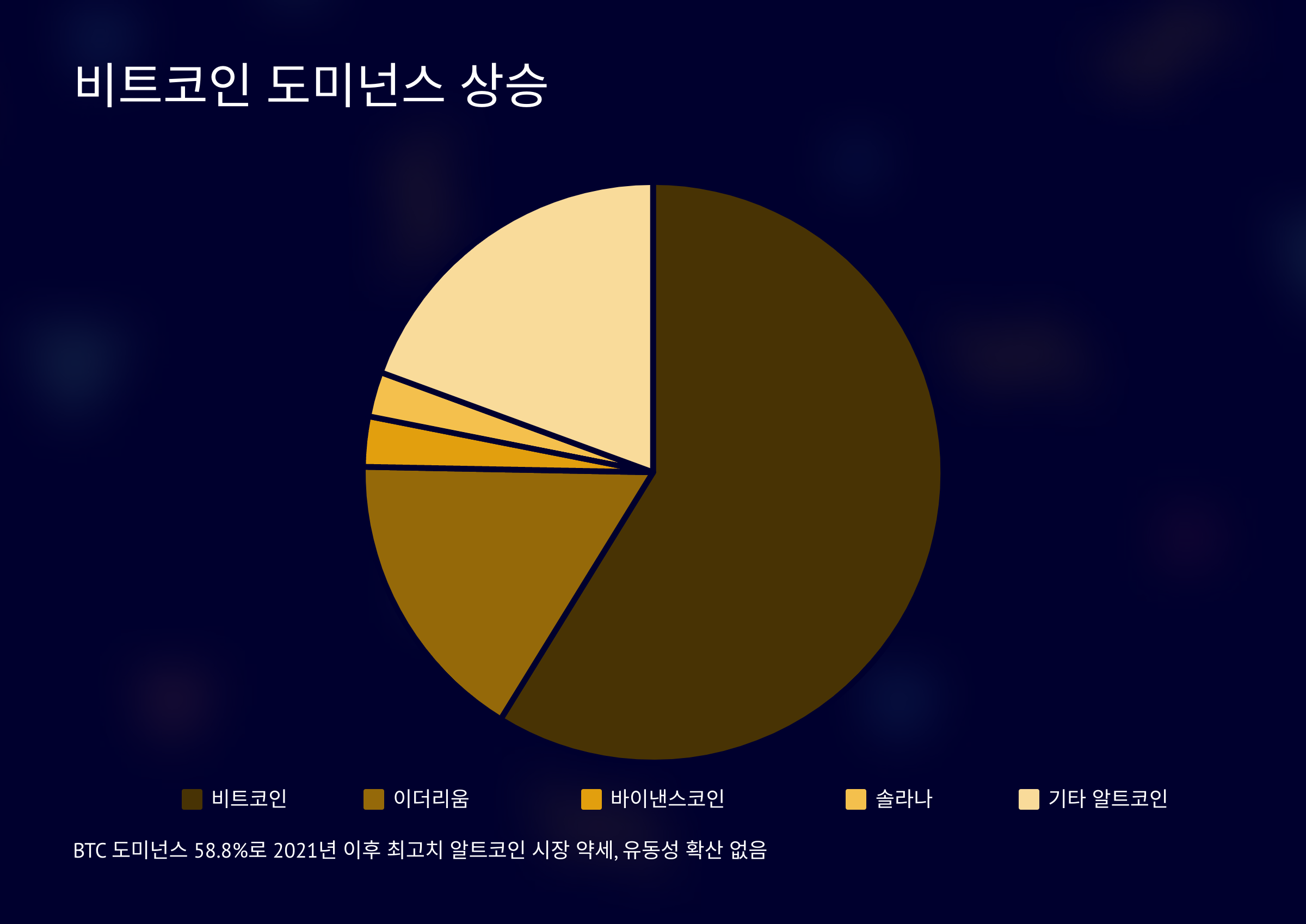 | BTC 도미넌스 | 58.8% | 비트코인 편중 심화, 알트코인 시장 약세 |
