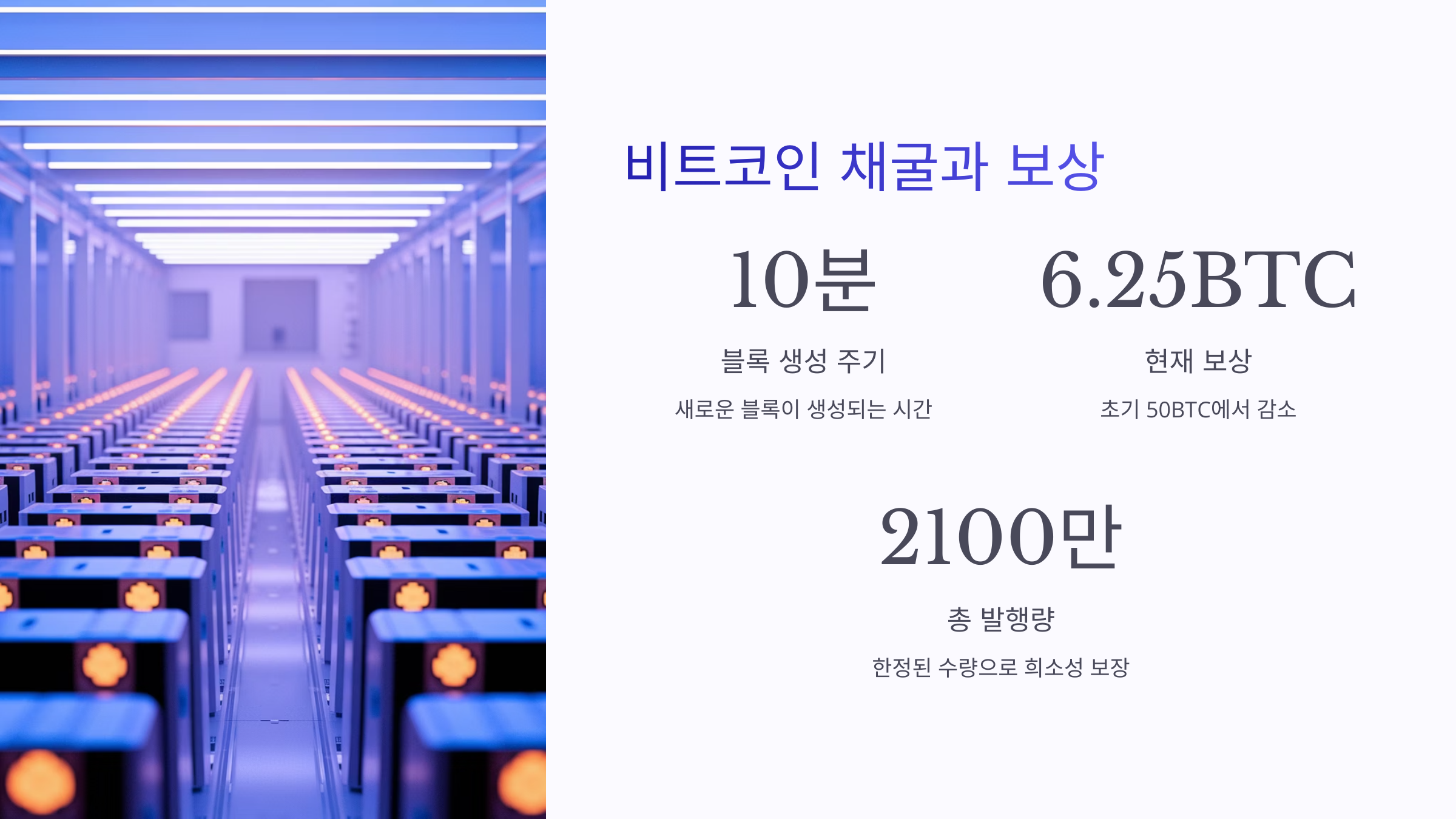 비트코인의 총 발행량은 2,100만 개로 제한되어 있으며,