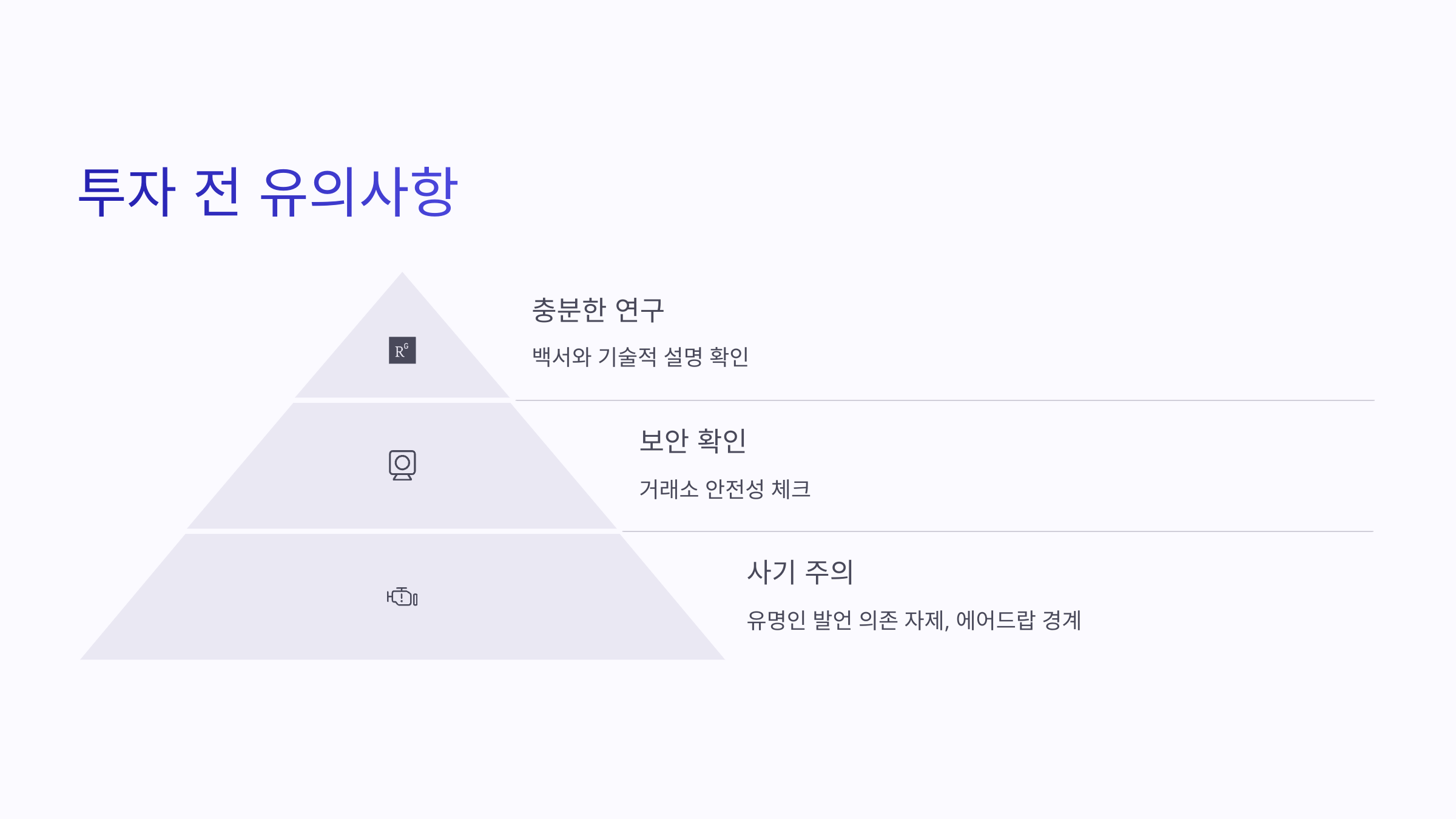- 사기성 코인 및 무분별한 ‘에어드랍’ 주의