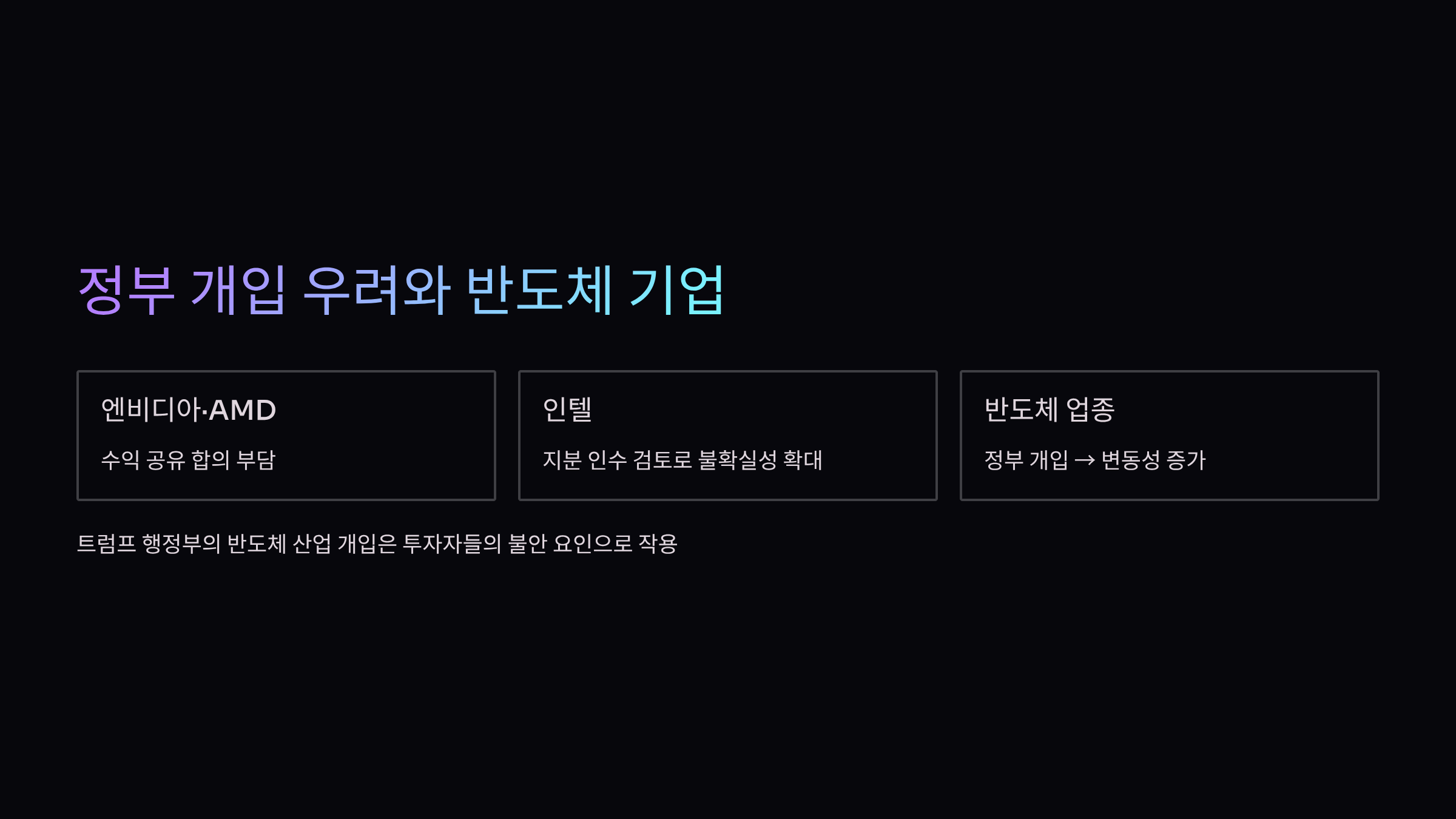 트럼프 행정부의 반도체 산업 개입은 투자자들의 불안 요인으로 작용했습니다.