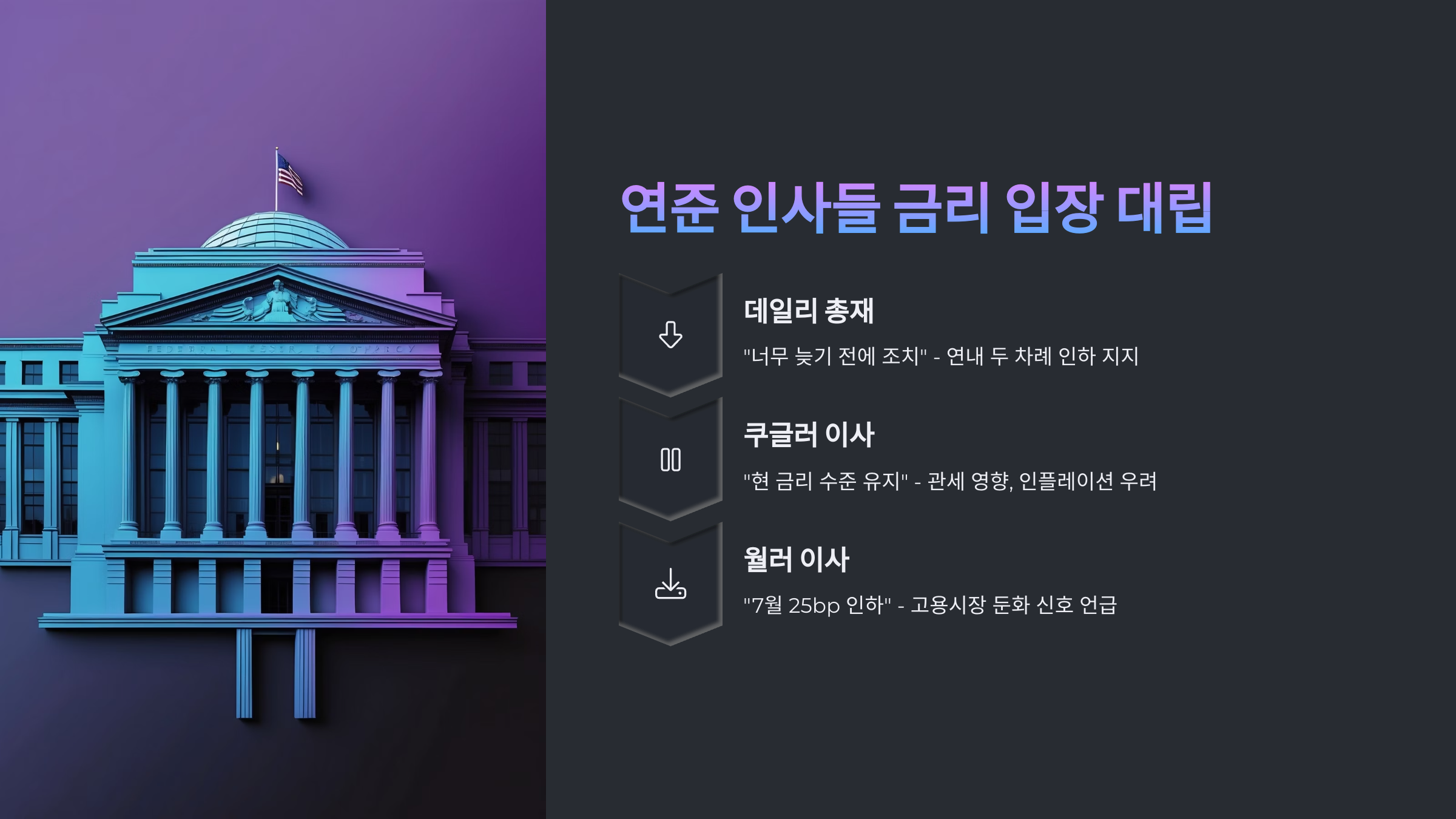 - 연준 인사들의 금리 인하 엇갈린 발언