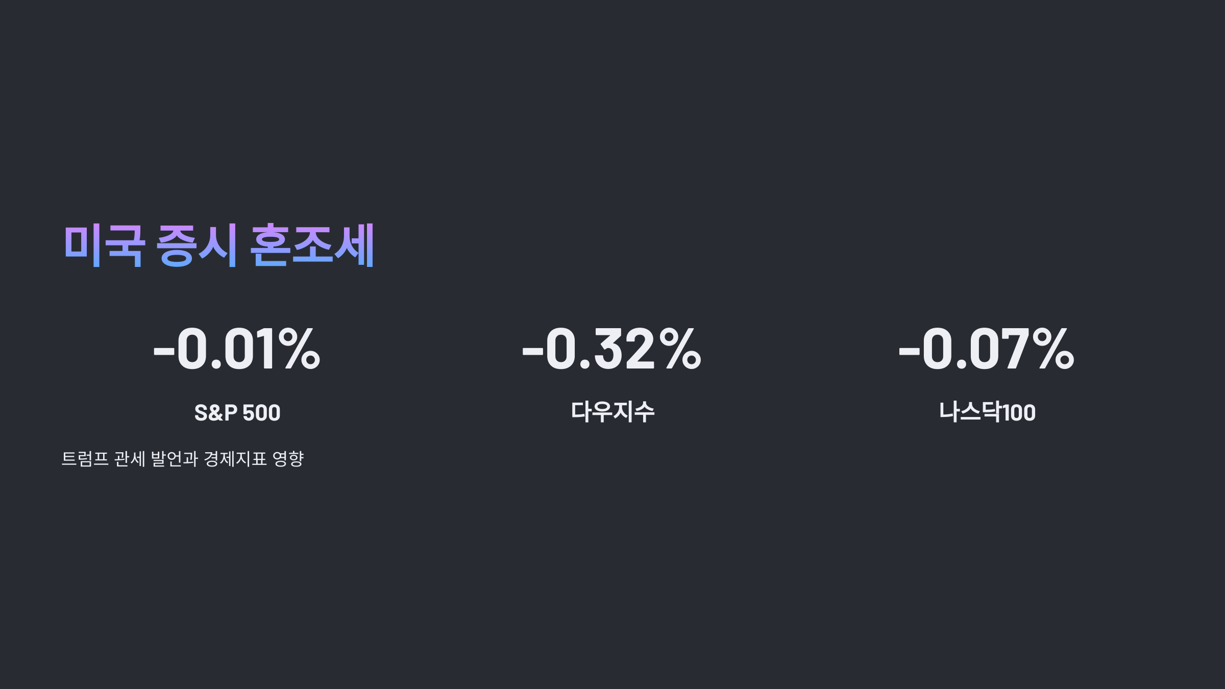 | 다우지수 | 44,482.32 | 44,342.19 | -0.32% |